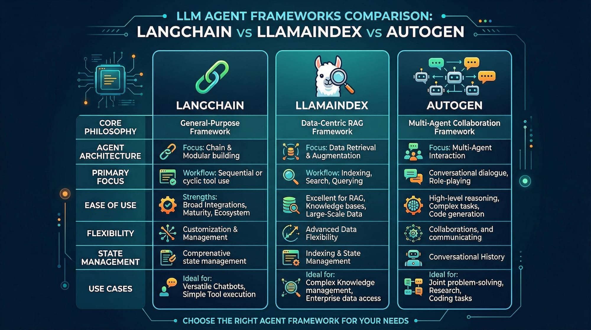 - LlamaIndex: Optimizes retrieval from structured and unstructured data sources.