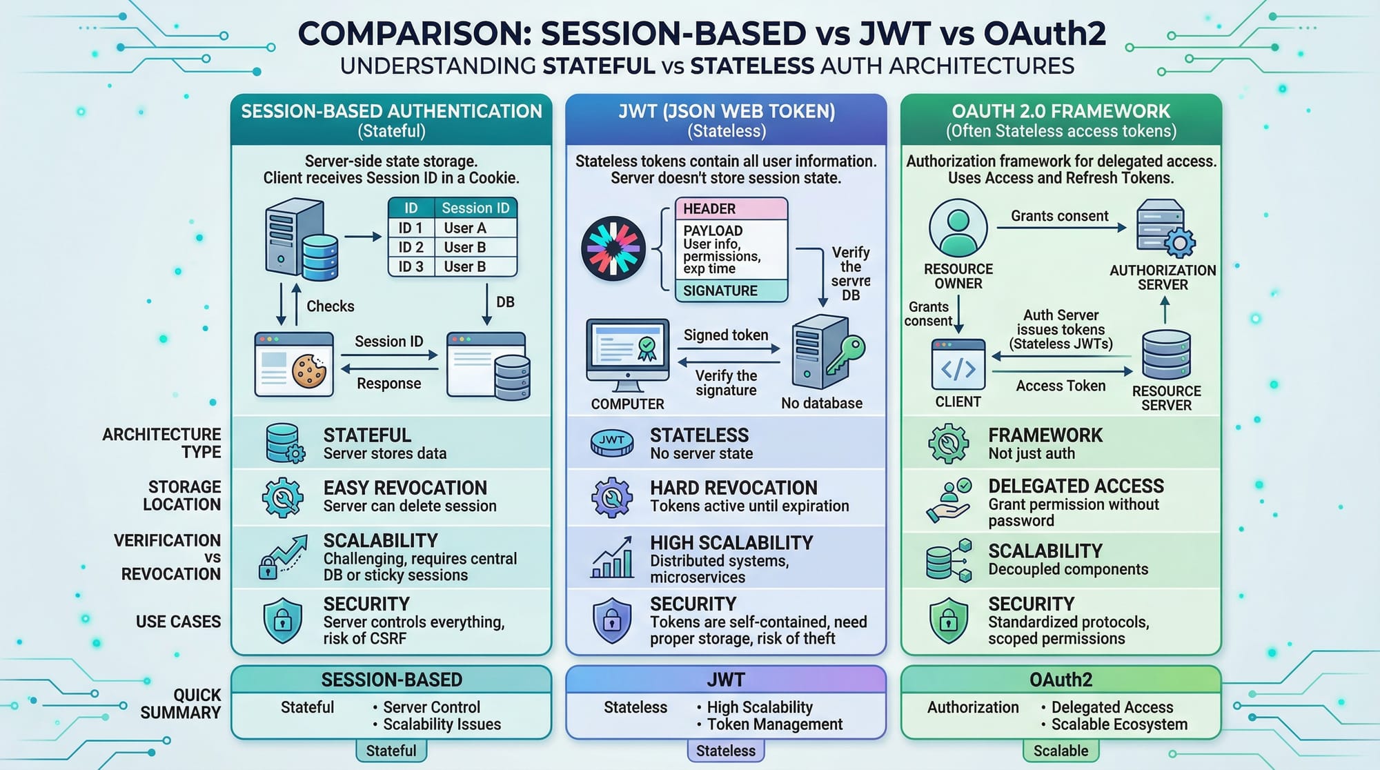 API authentication is the process of verifying who is making a request to your server or application. In modern web development, especially when building REST APIs or microservices, authentication ensures that only authorized users can access protected resources. In this tutorial, we will explore four widely used API authentication methods: JWT (JSON Web Tokens), OAuth2, API Keys, and Sessions.