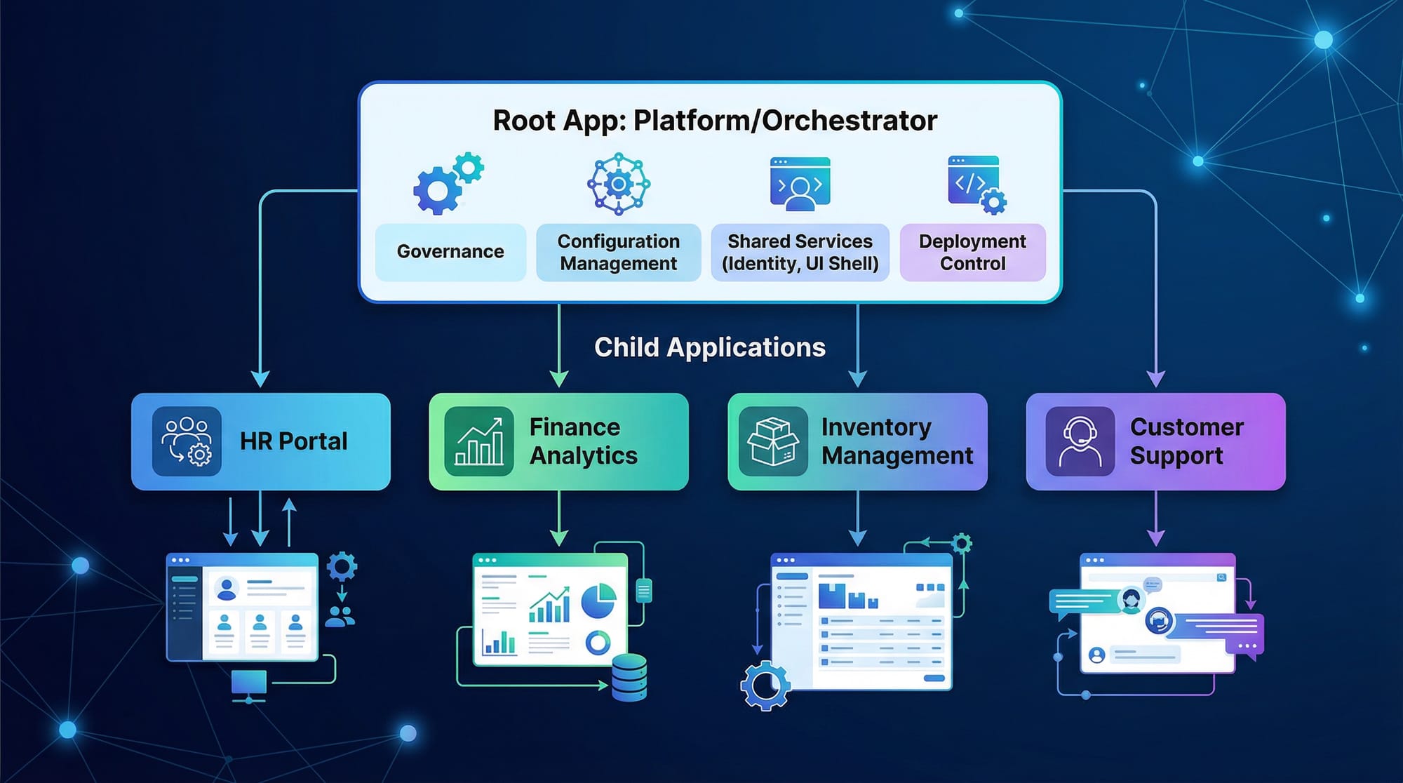 - Each application is a declarative CRD stored in Git.
