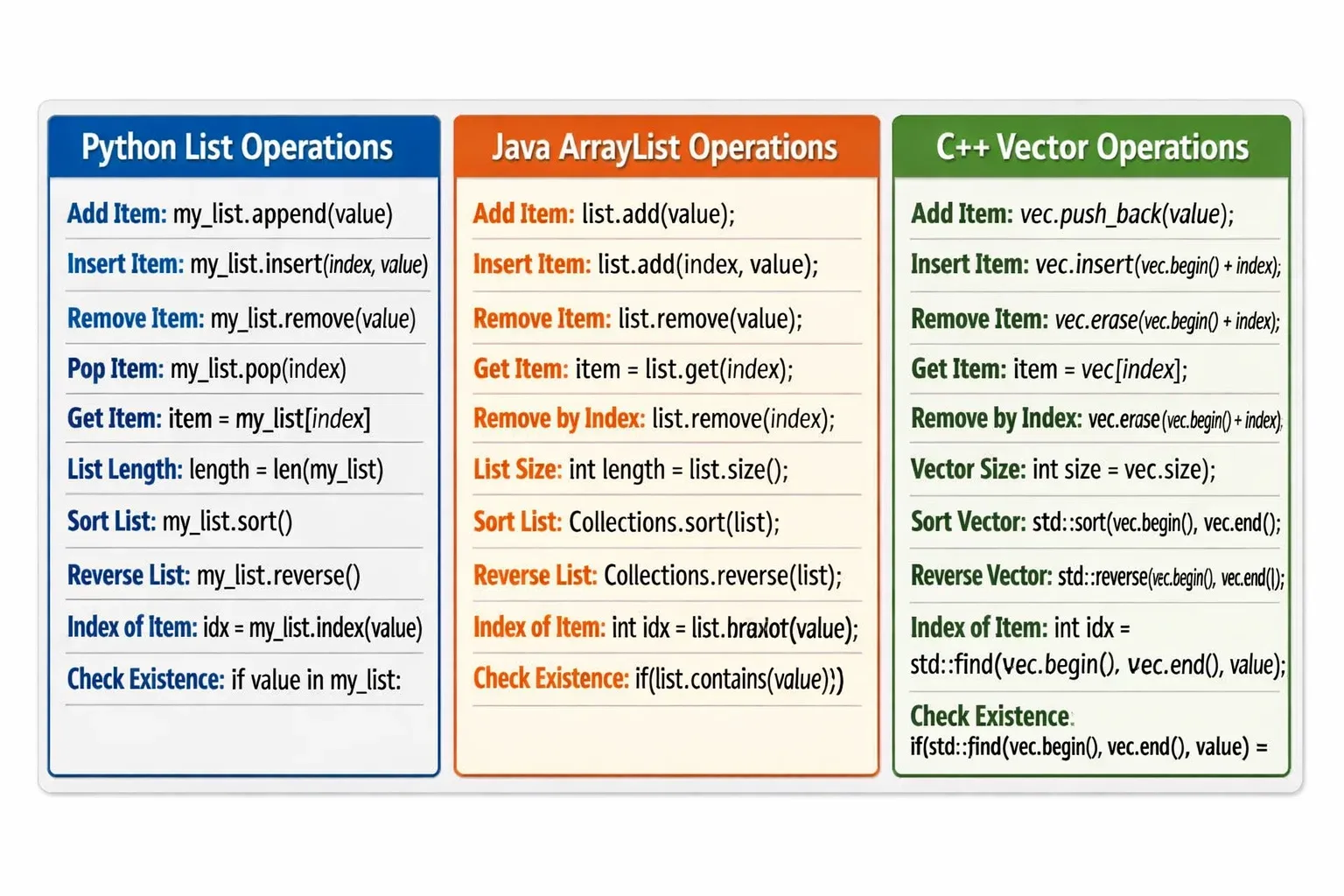 Languages like Python, Java, and C++ provide dynamic arrays:
