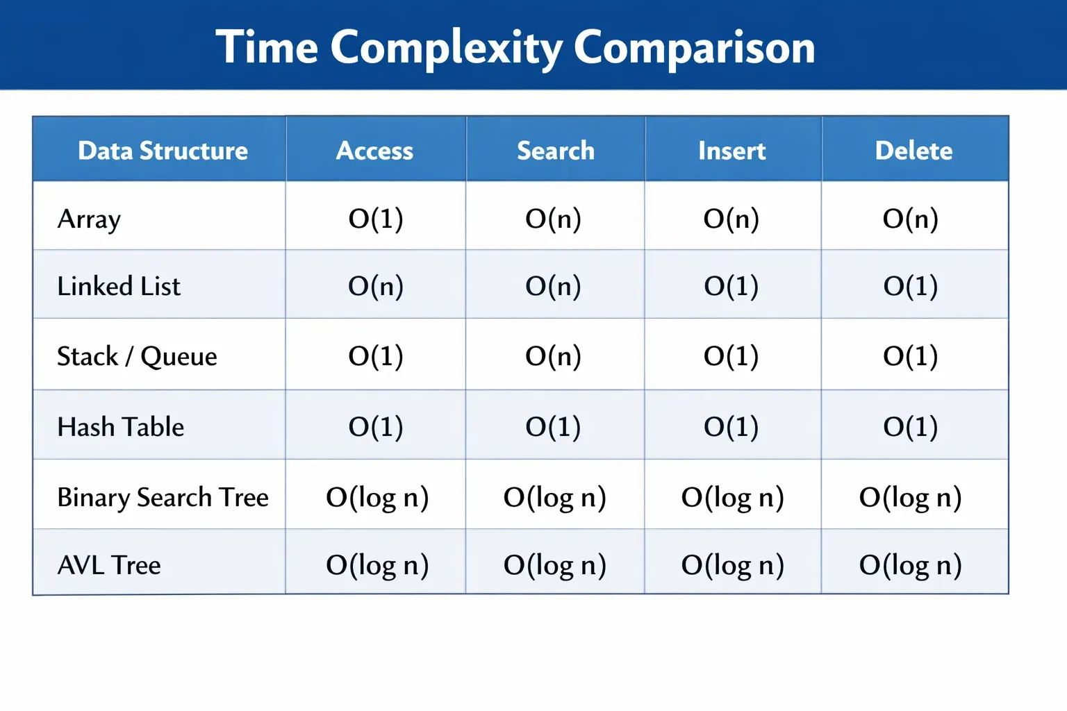 | Access Speed | Fast (O(1)) | Slow (O(n)) |