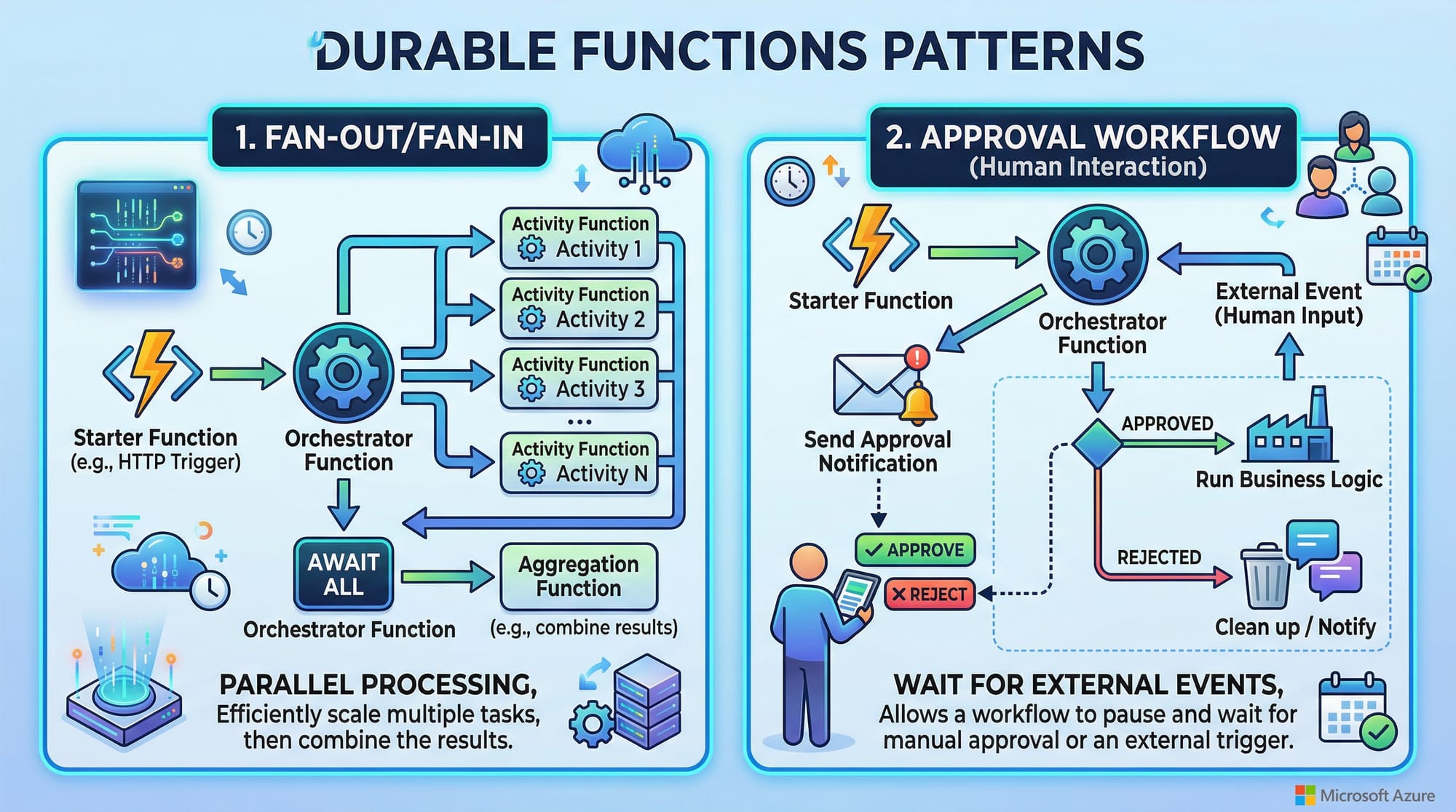 These technologies fall under the category of azure serverless, which means you don’t have to manage servers manually. Instead, you focus on writing code, and Azure handles scaling, infrastructure, and availability.