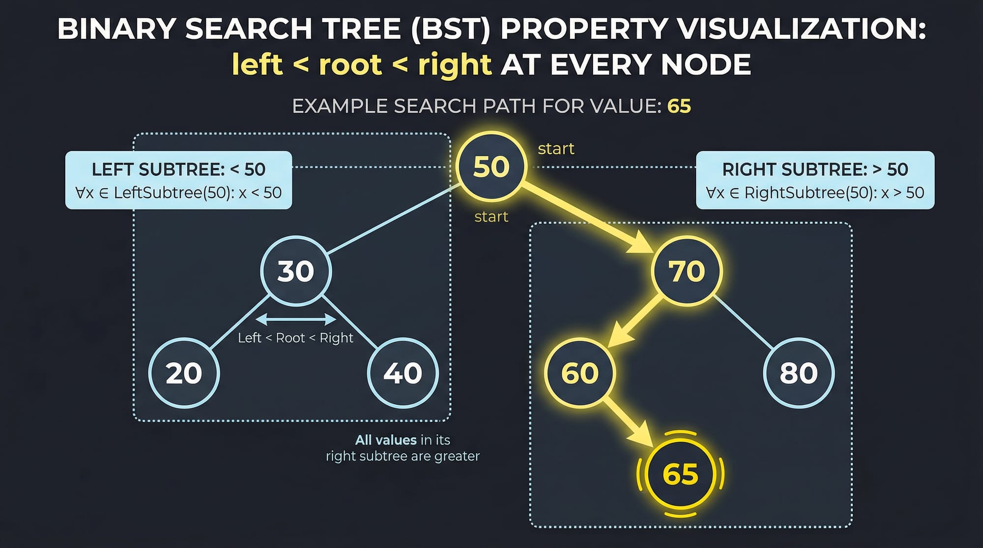 This property makes searching very fast (O(log n) in balanced cases).