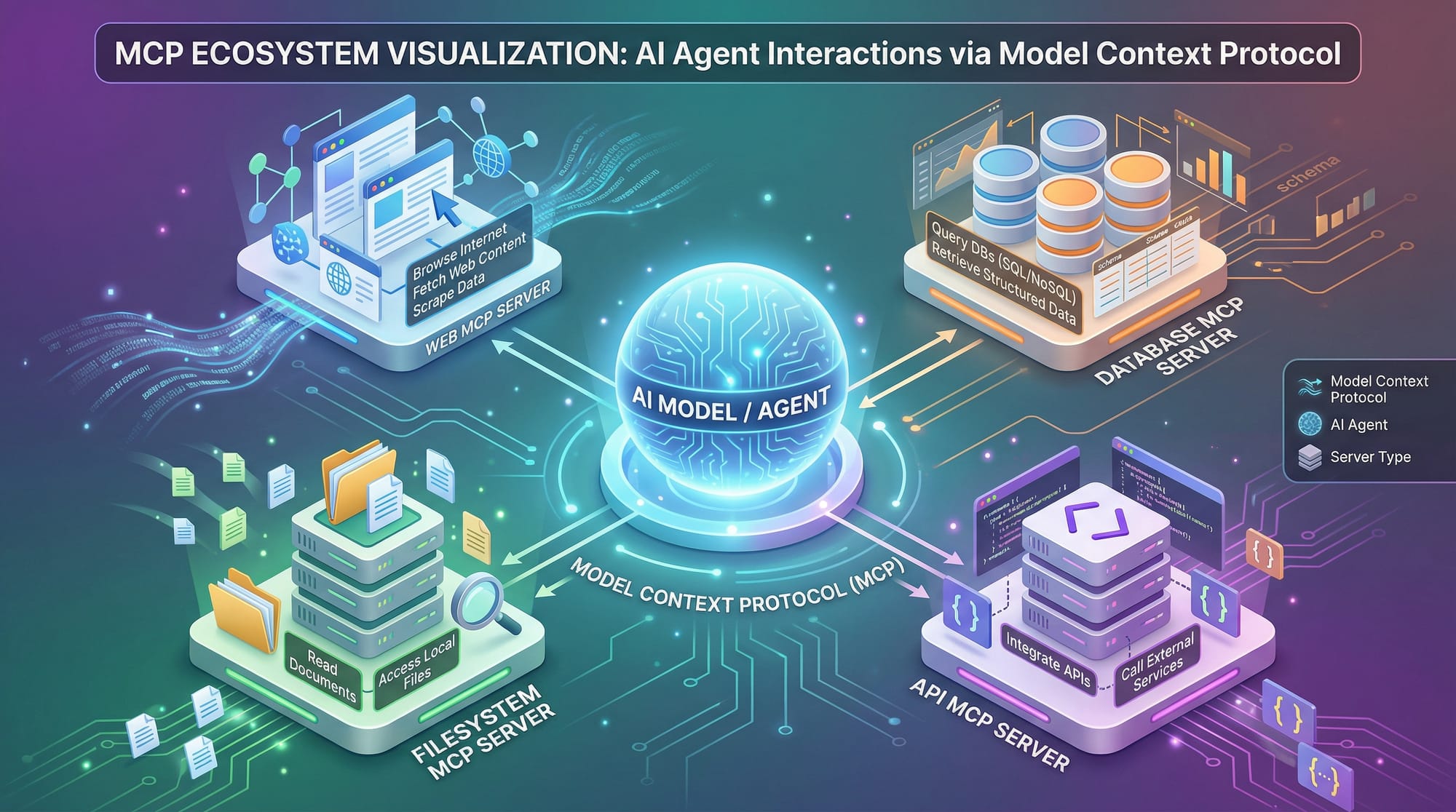 - MCP Server: Processes requests, runs tools, and returns results.