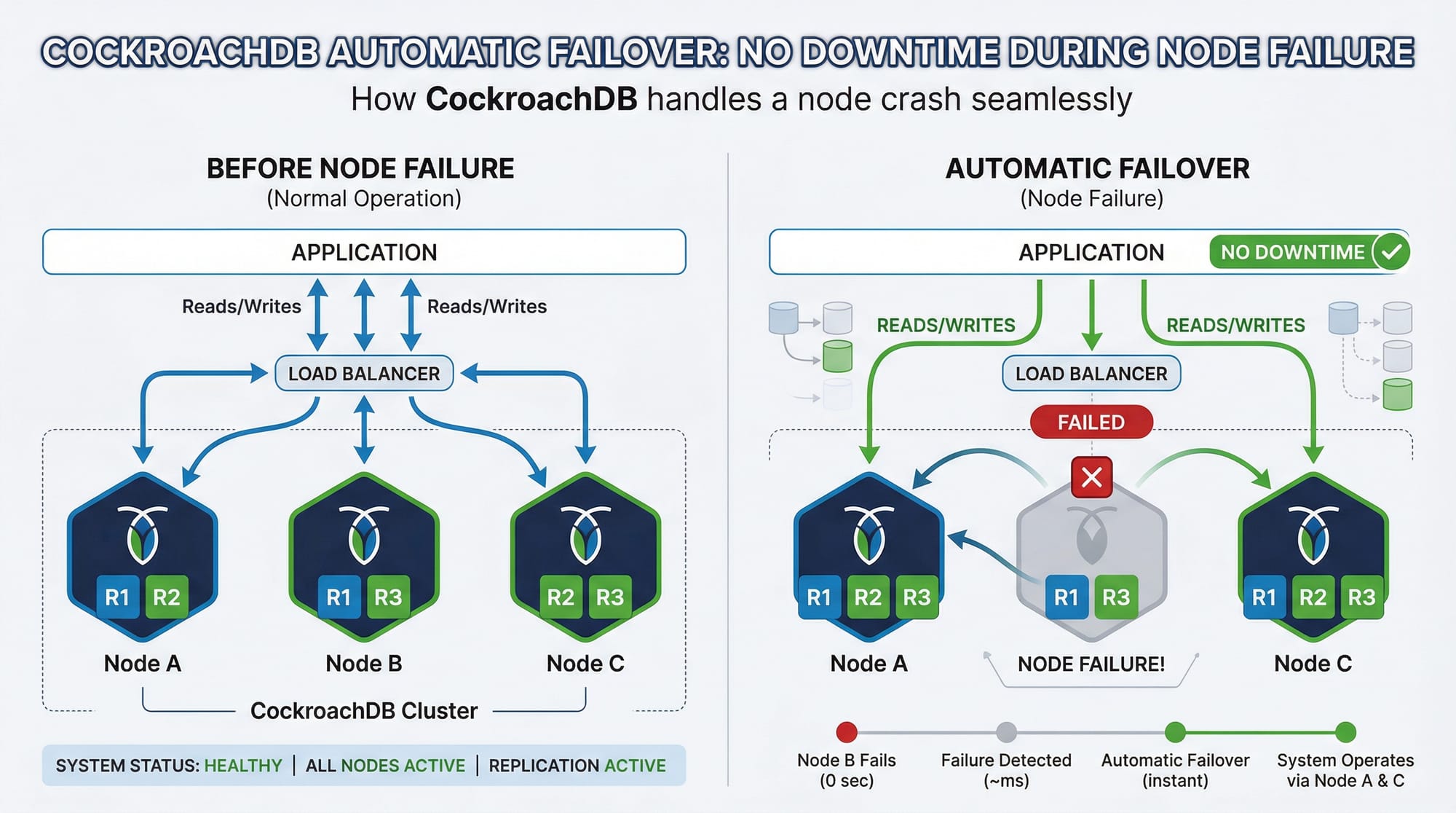 Some beginners try to manually manage replicas. CockroachDB handles failover automatically.