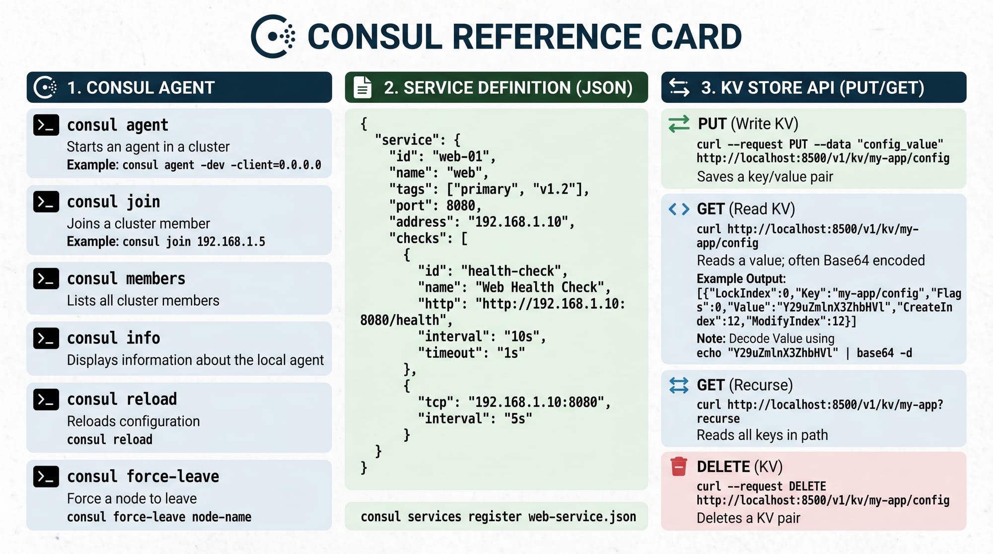 consul agent→ Starts Consul service node-dev→ Runs in development mode (single node, testing only)