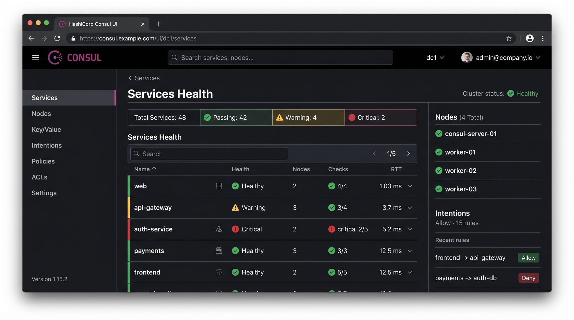 If a Karachi-based payment API stops responding, Consul marks it as “critical” and removes it from routing automatically.