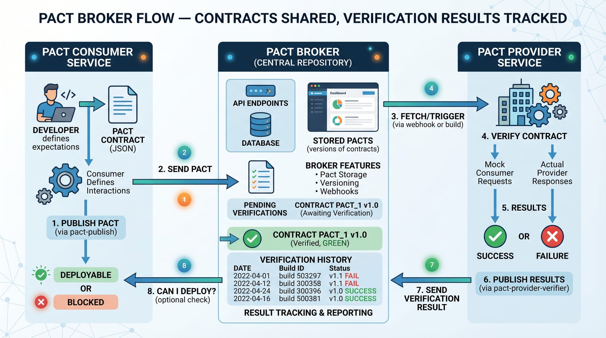 If the provider changes the response structure, Pact will catch the issue before deployment.