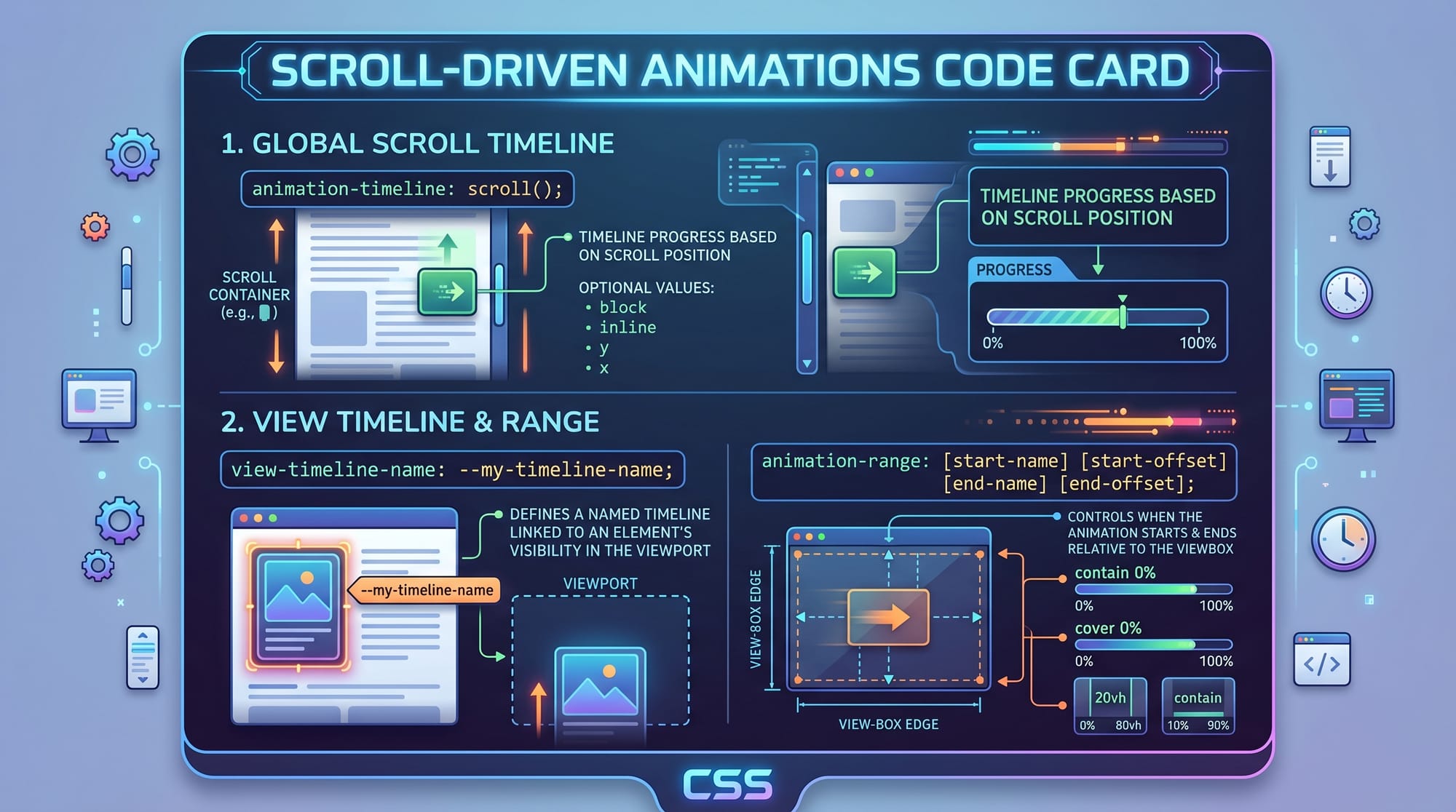 CSS scroll-driven animations are part of a new browser API that allows developers to create animations directly linked to the user’s scroll position—without relying heavily on JavaScript. Instead of triggering animations with events, you define timelines that respond to scrolling behavior using modern CSS properties like animation-timeline, scroll(), and view().