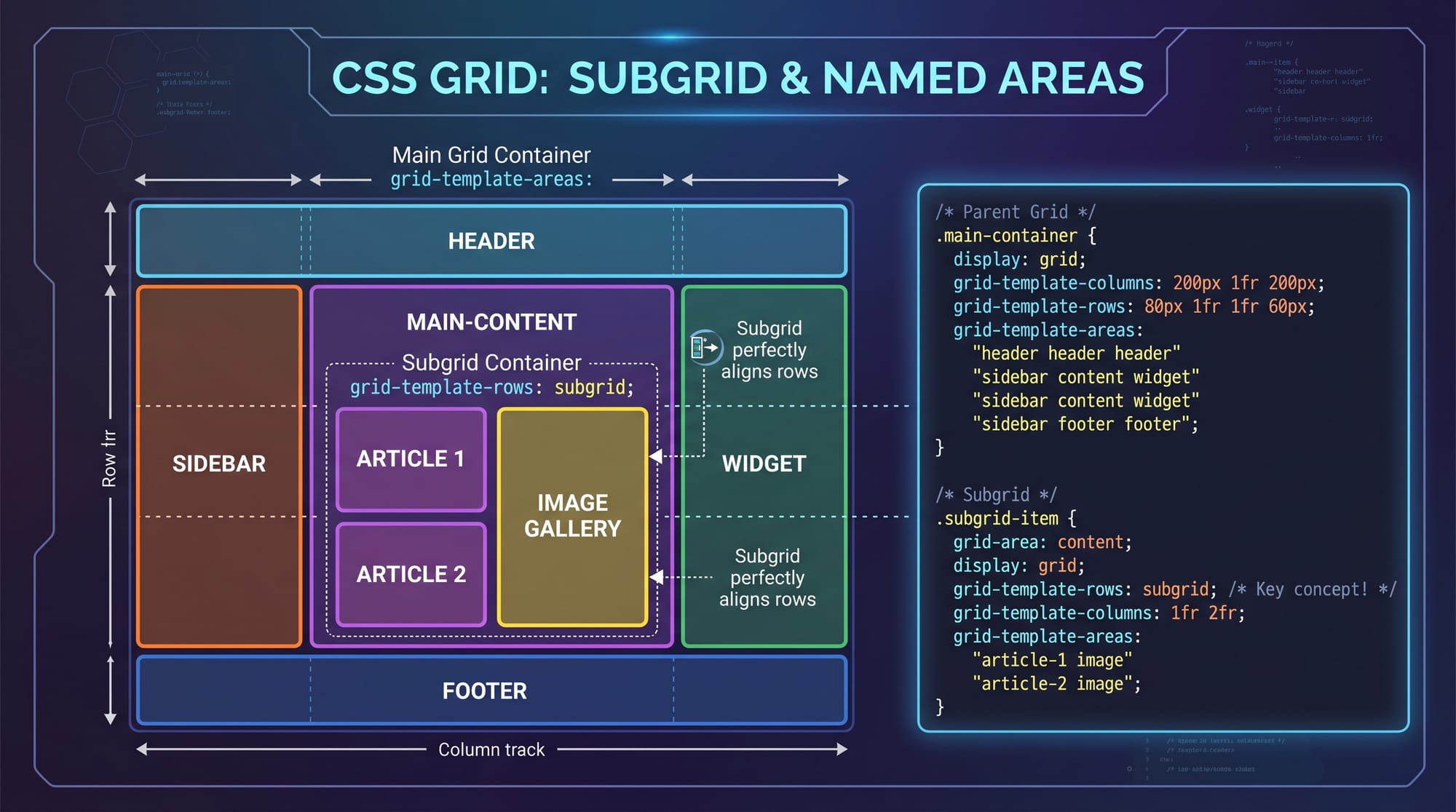 - Subgrid is ideal for real-world layouts like dashboards and e-commerce sites.