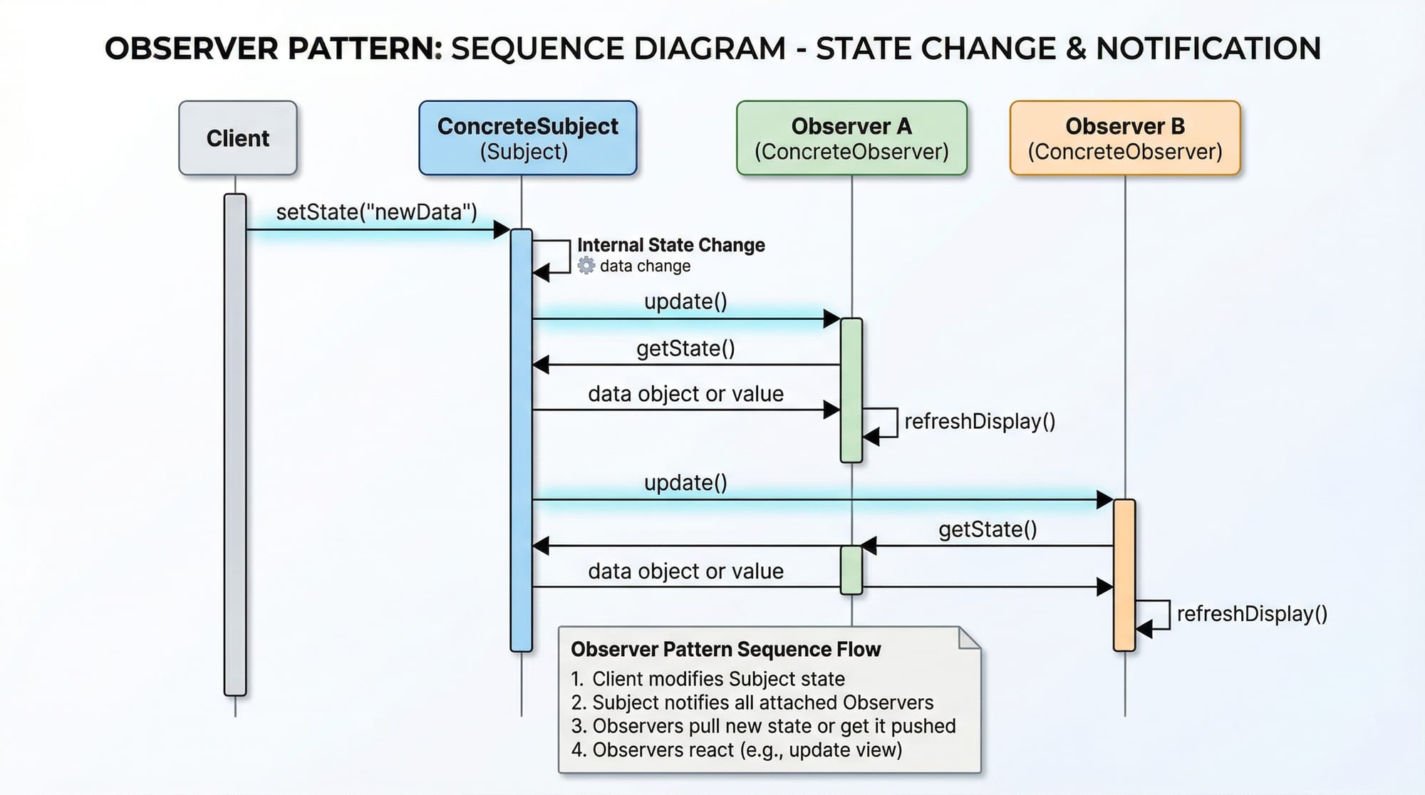 # Observer pattern: Subject notifies observers of state changes