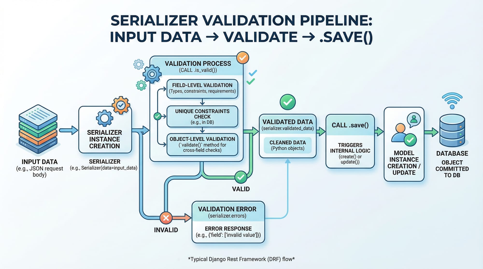 data=request.data→ Takes input from request.is_valid()→ Validates data.save()→ Stores in database.serializer.errors→ Returns validation errors.
