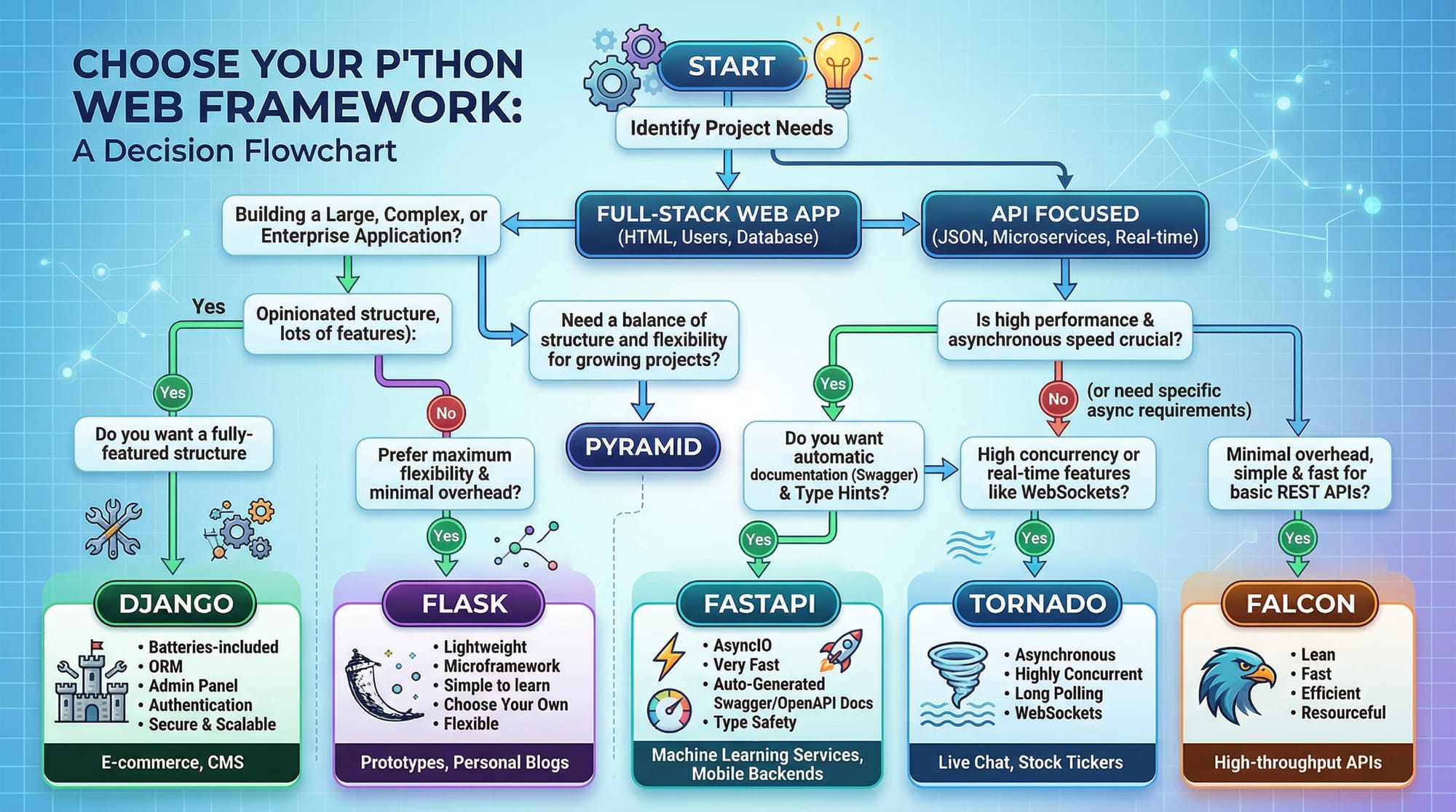 - FastAPI: Modern, async-first framework designed for high-performance APIs, ideal for apps that handle many concurrent requests.