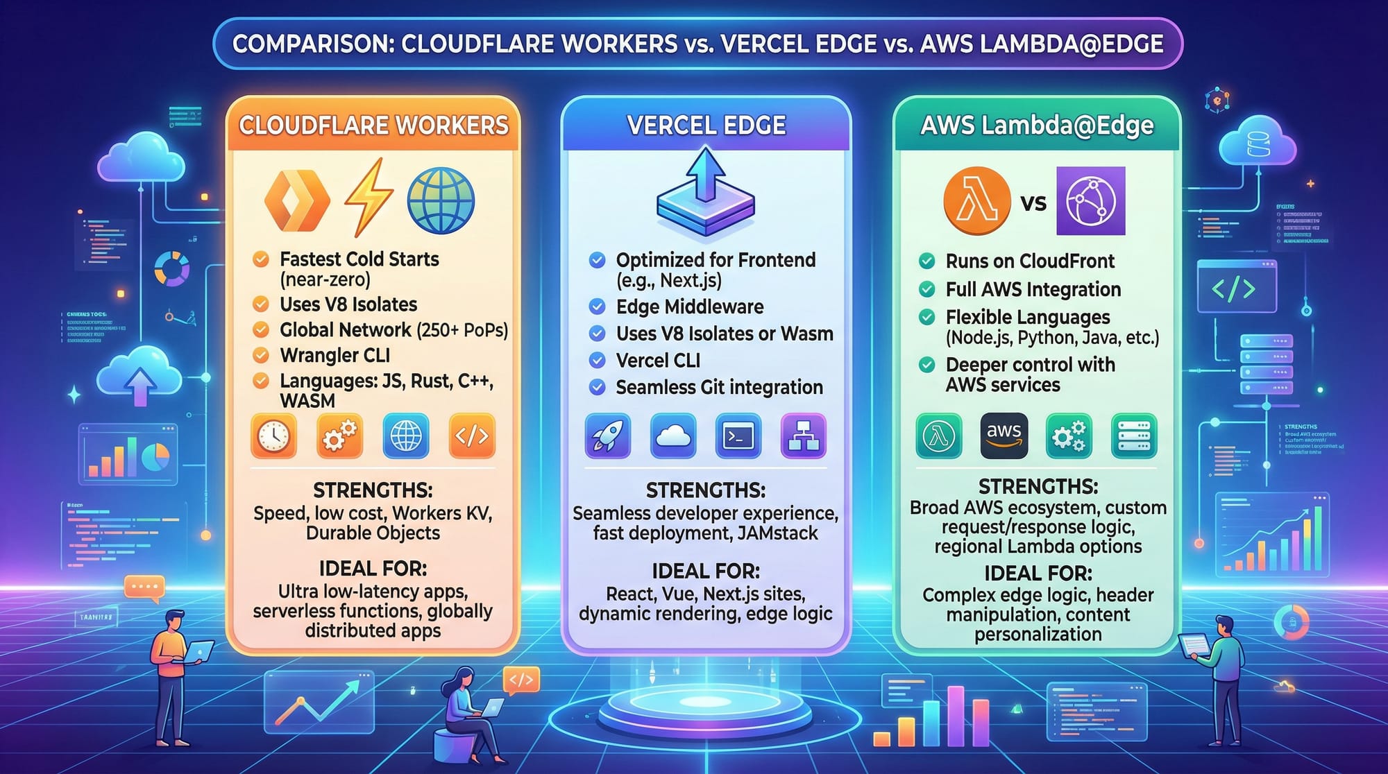 Cloudflare Workers allow you to write JavaScript, TypeScript, or Rust-based functions that run directly on Cloudflare’s global network. Key benefits include: