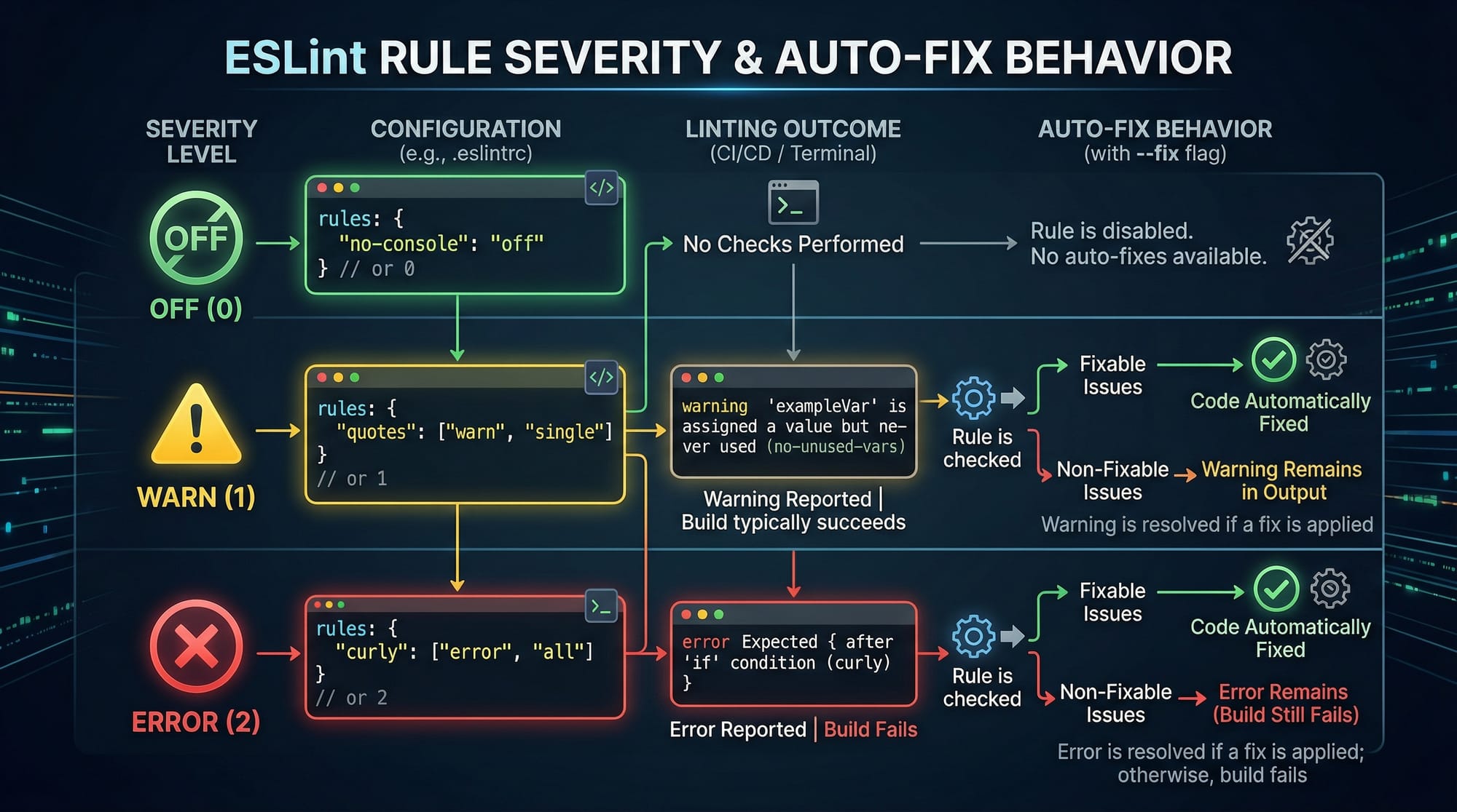 npx→ runs package without installing globallyeslint --init→ sets up configuration interactively