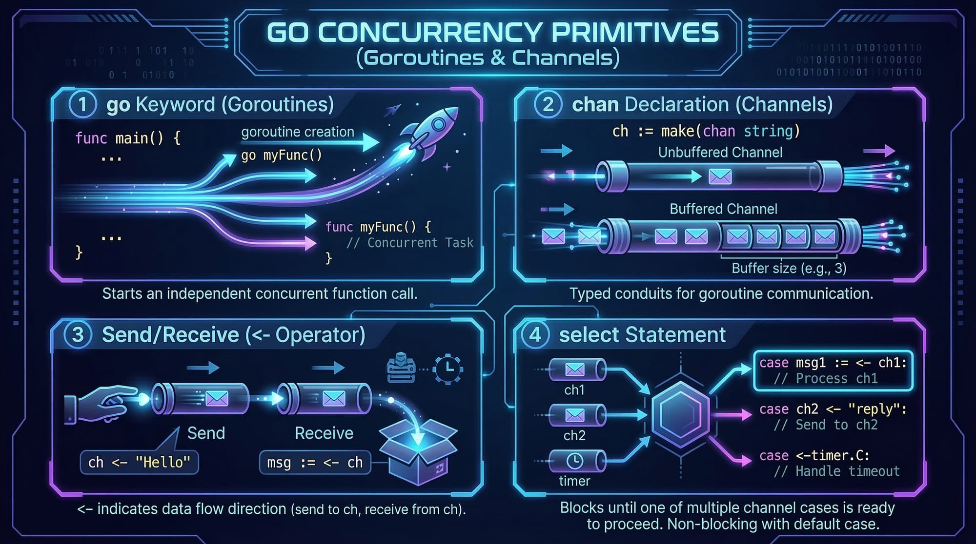 Go, commonly known as Golang, is one of the fastest-growing programming languages worldwide. One of its most powerful features is concurrency, which allows developers to run multiple tasks simultaneously. In Go, this is achieved using goroutines and channels, which are lightweight, efficient, and easy to use compared to traditional threads.