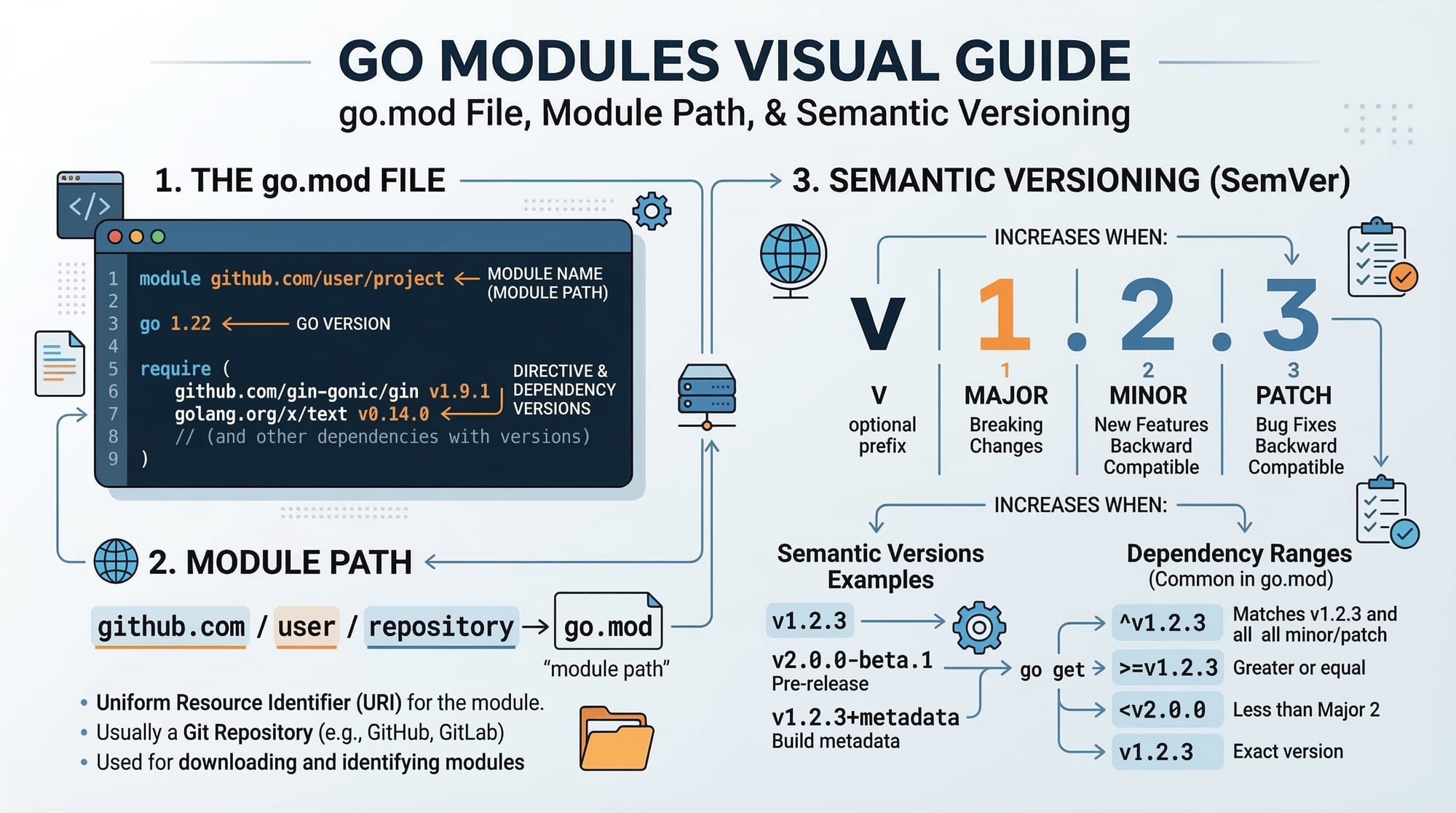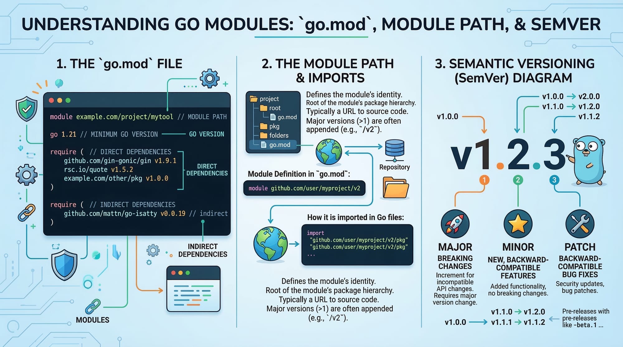 go.modandgo.sumautomatically. - Ensures consistent builds across systems (very important if Ali and Fatima are working on the same project remotely in Islamabad and Lahore).