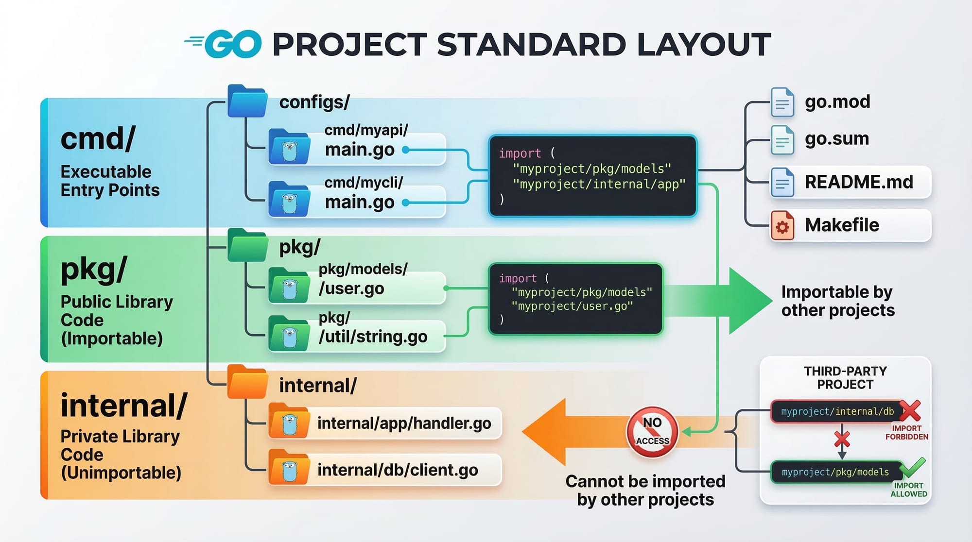 cmd/,pkg/,internal/) for professional codebases. - Real-world examples make your Go skills industry-ready.