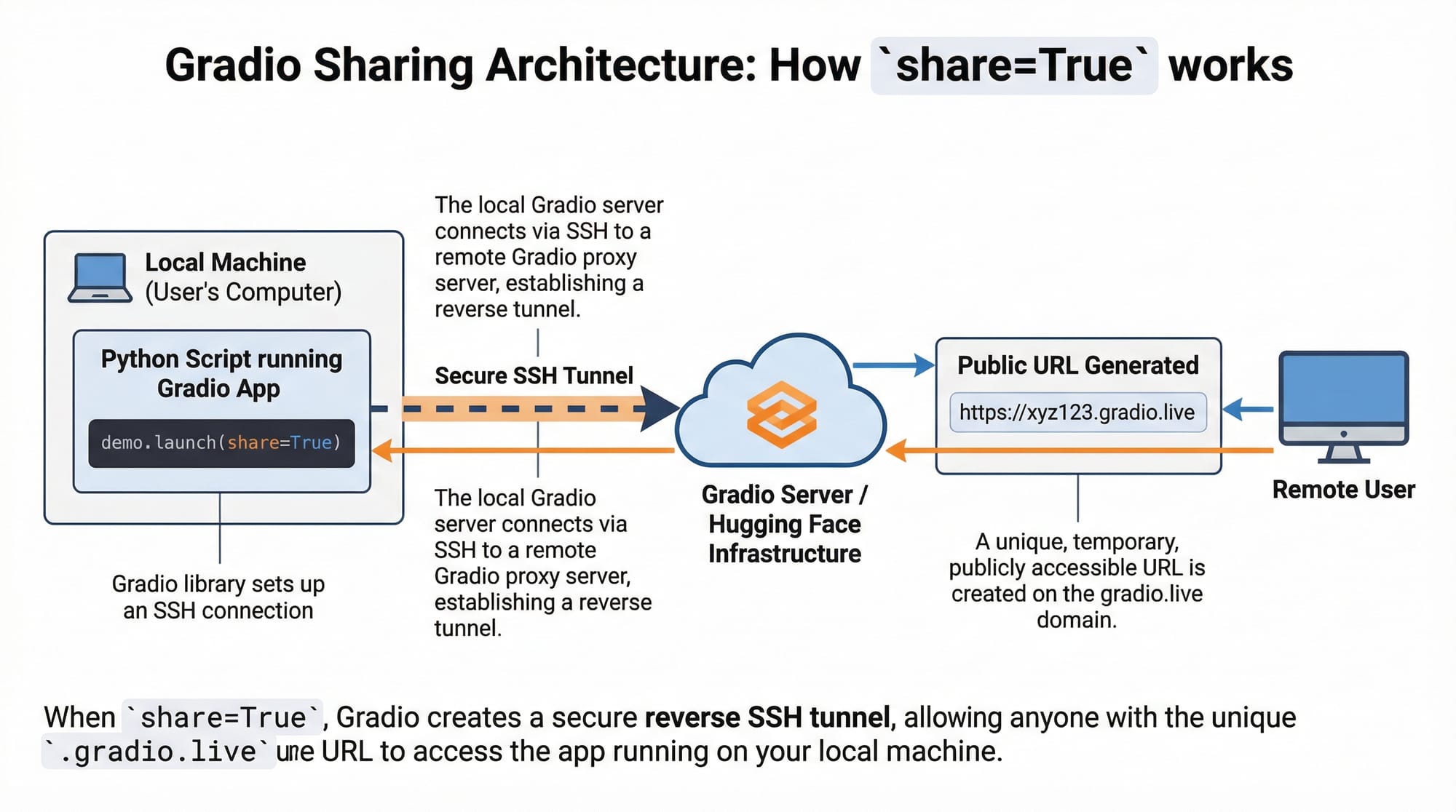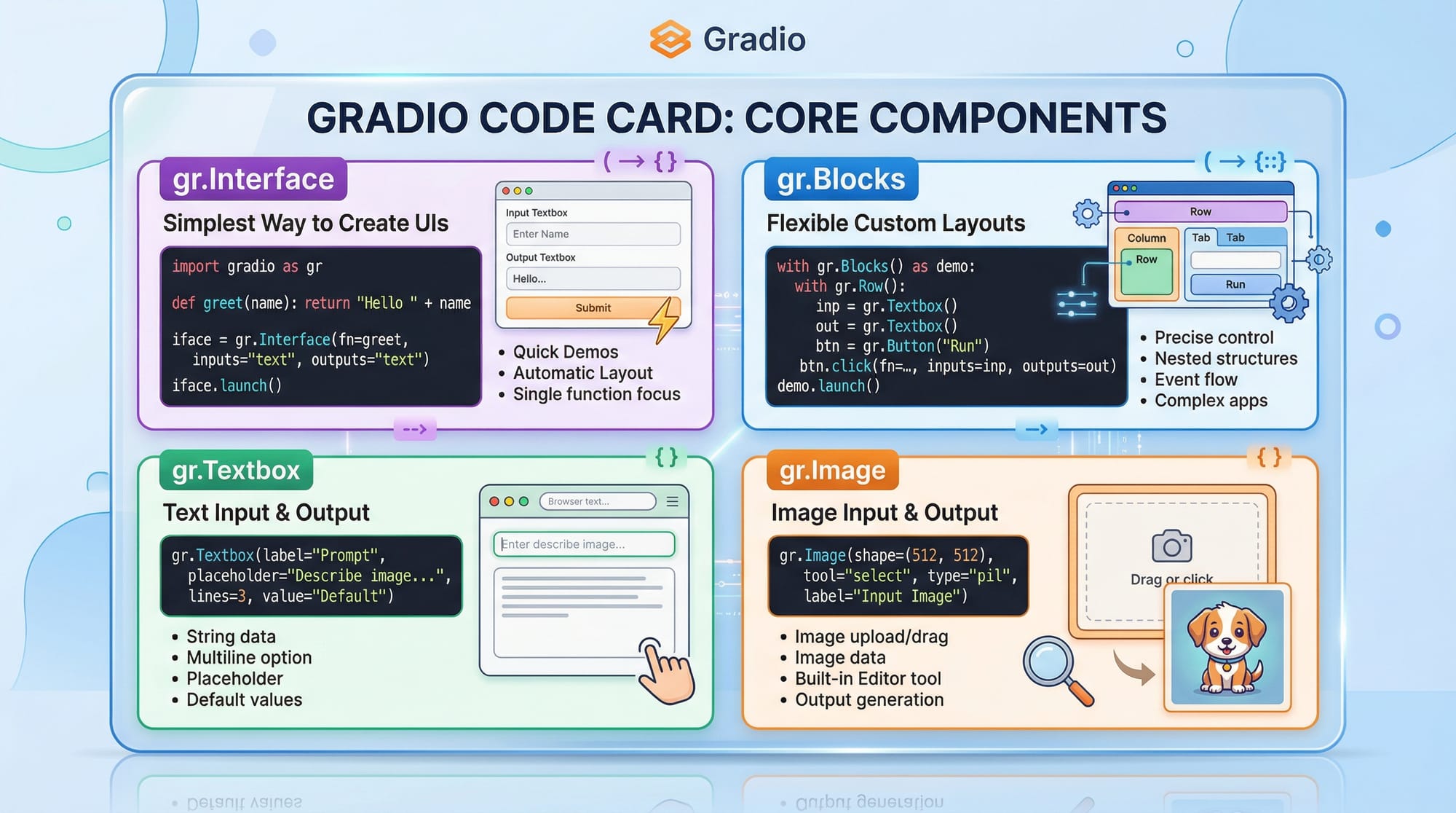 You write a function that takes input → processes it → returns output. Gradio wraps it into a web UI.