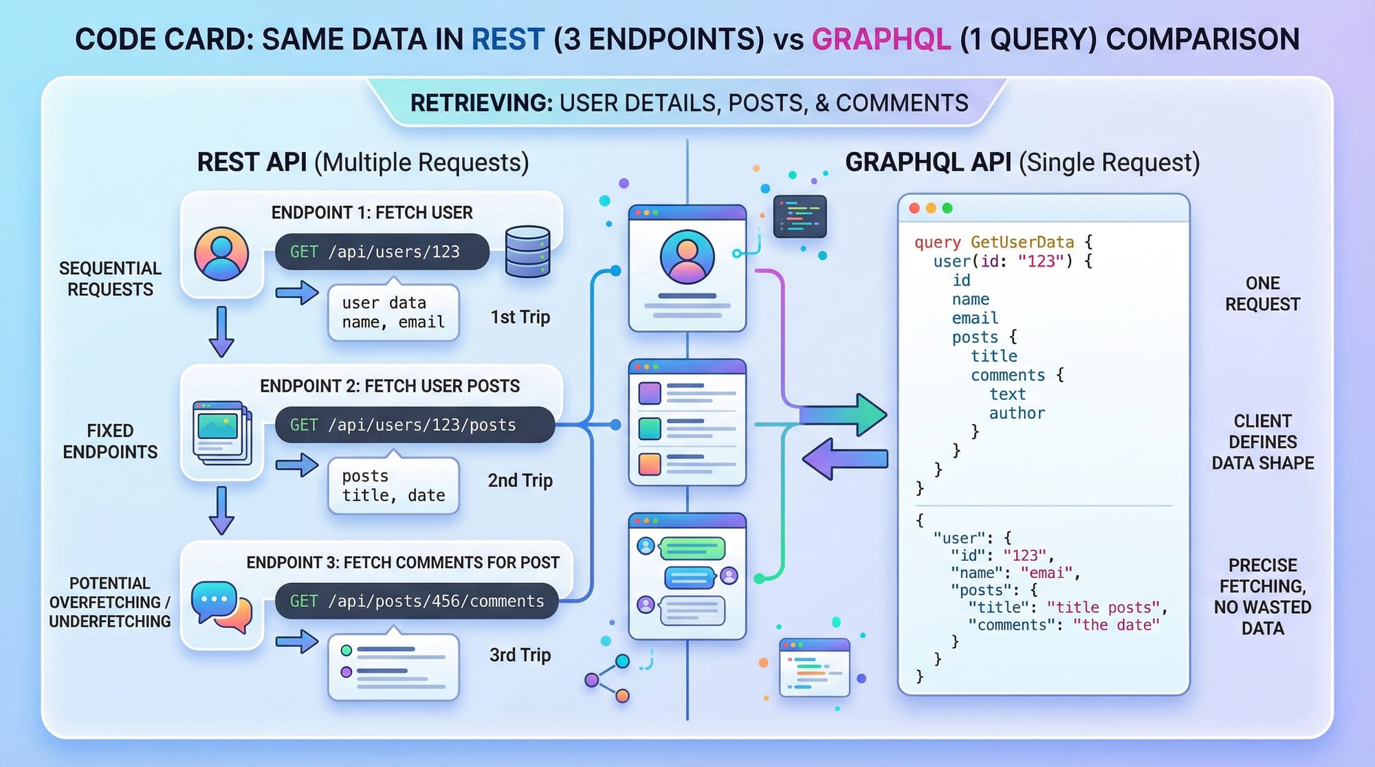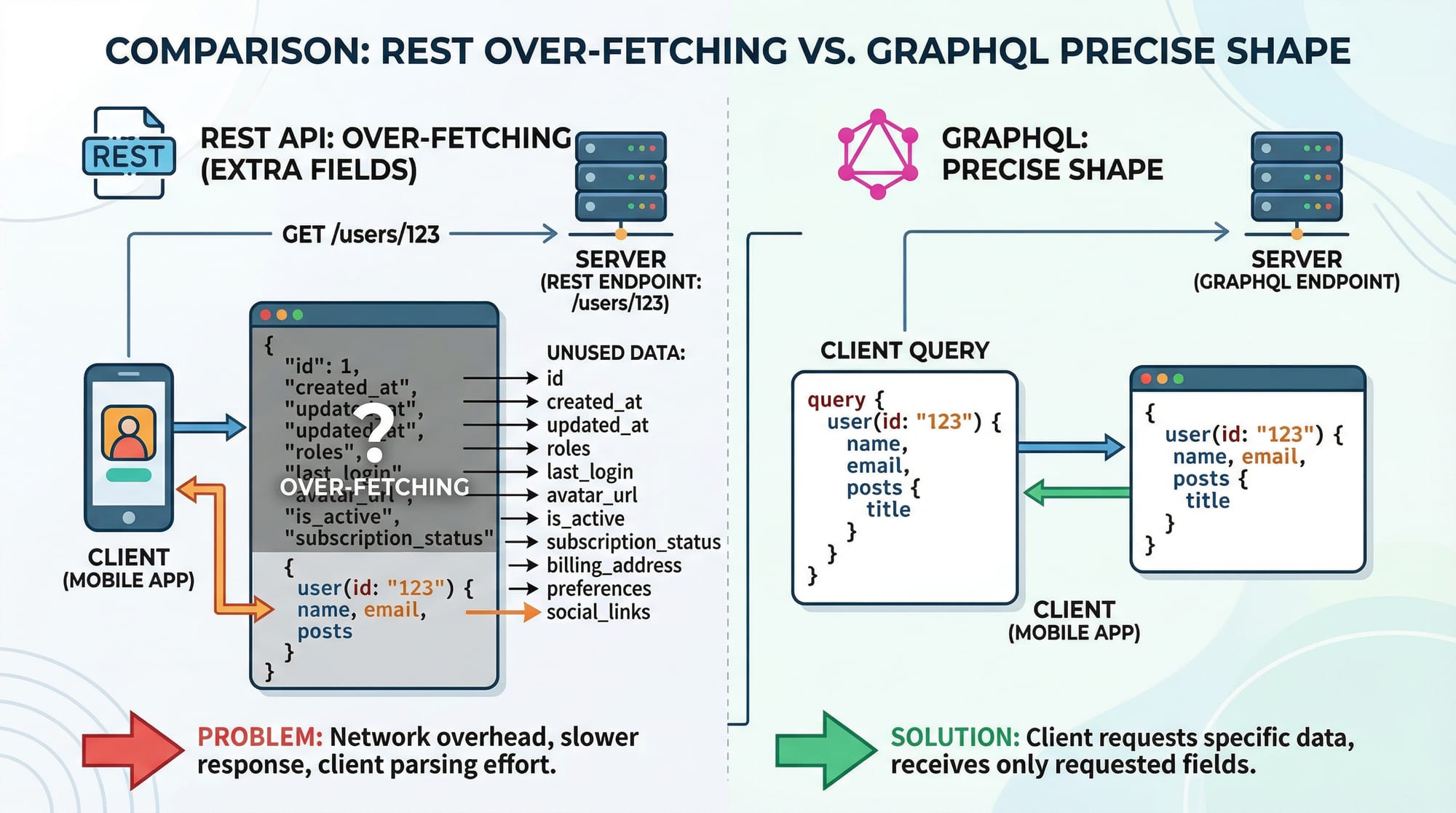 - GraphQL allows precise data fetching