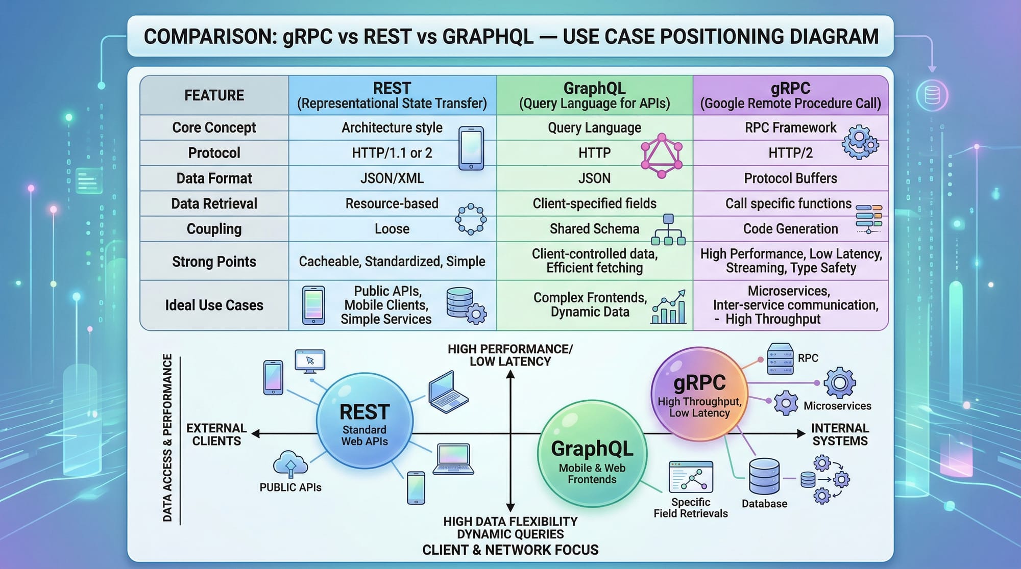 - GraphQL vs REST — Understand how gRPC compares with GraphQL.