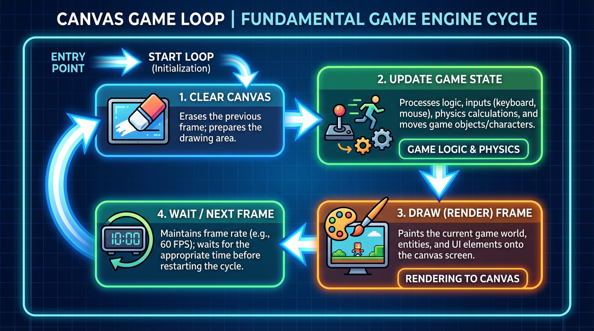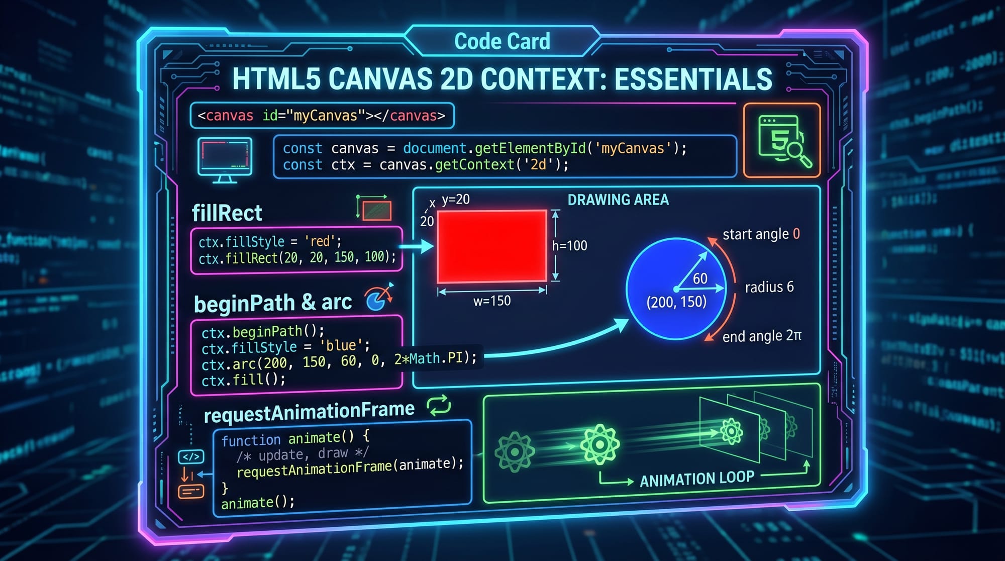getContext('2d')is essential for all drawingsrequestAnimationFrameis used for smooth animations- Canvas is widely used for games and interactive web apps