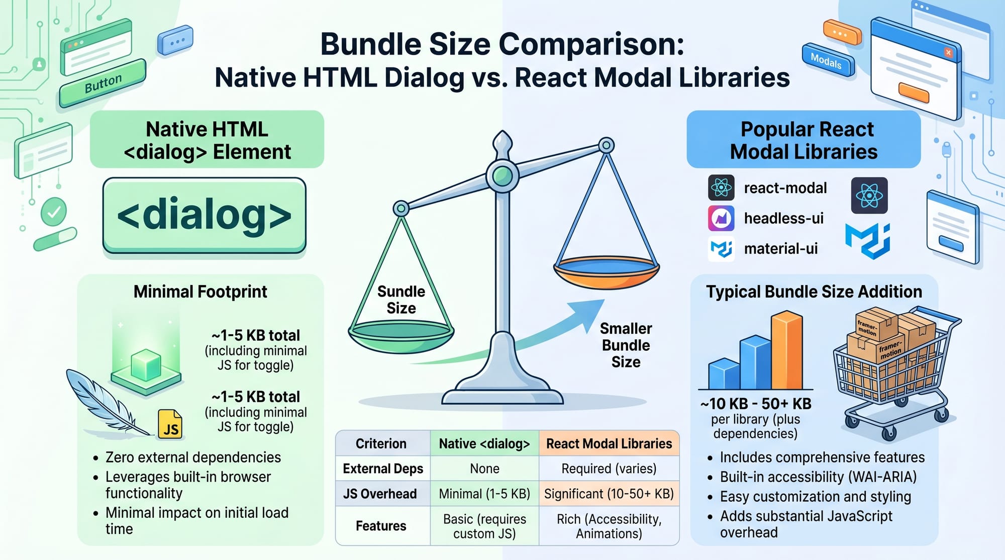 For most simple use cases, the native dialog element is better because it is faster, lighter, and more accessible compared to external modal libraries.