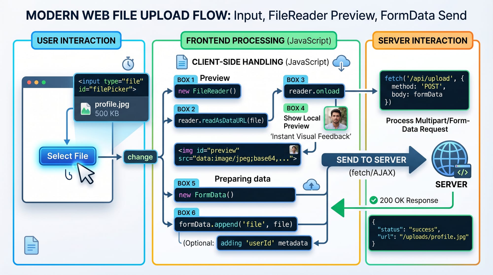 In this html forms tutorial: validation, FormData API & file uploads, you will learn advanced form techniques such as validation rules, handling form data using JavaScript, and uploading files like images and documents.