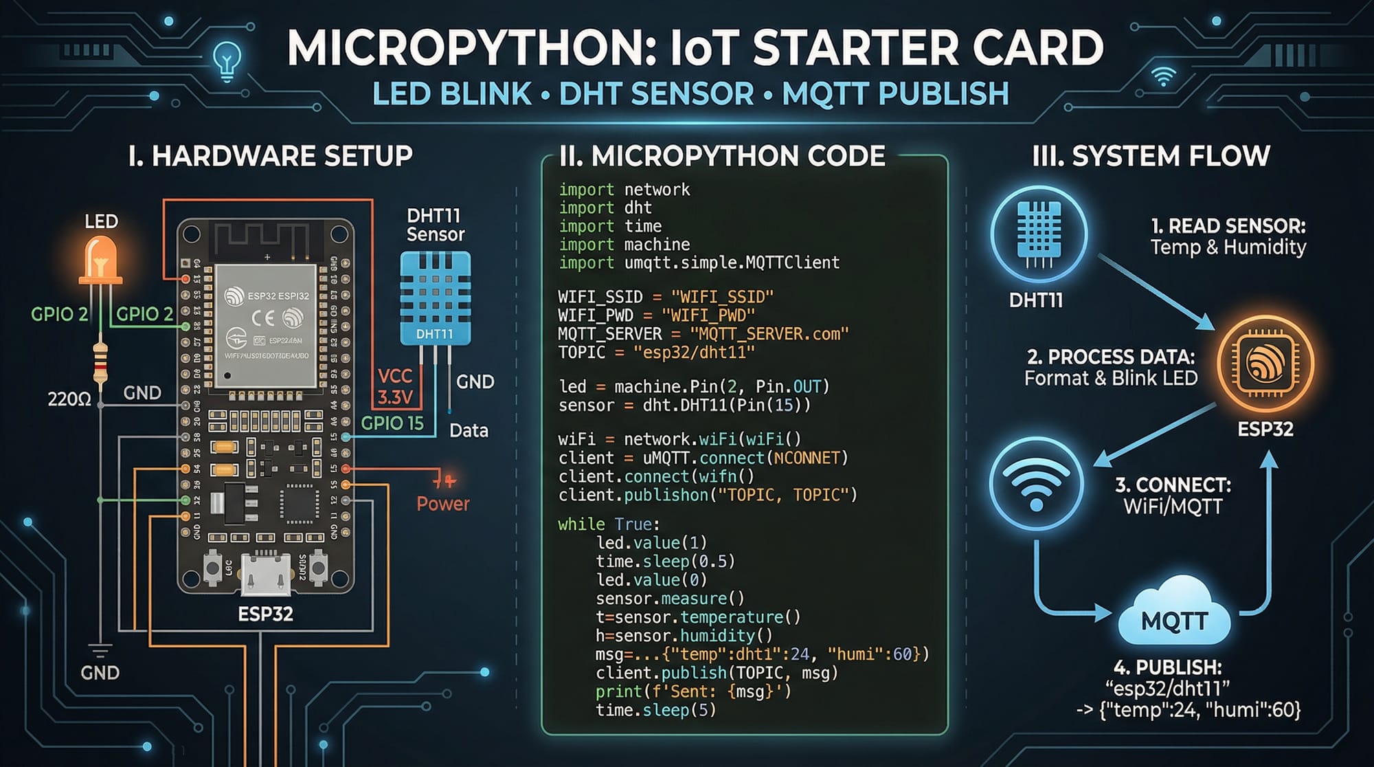 - MicroPython tutorial concepts (lightweight Python for microcontrollers)
