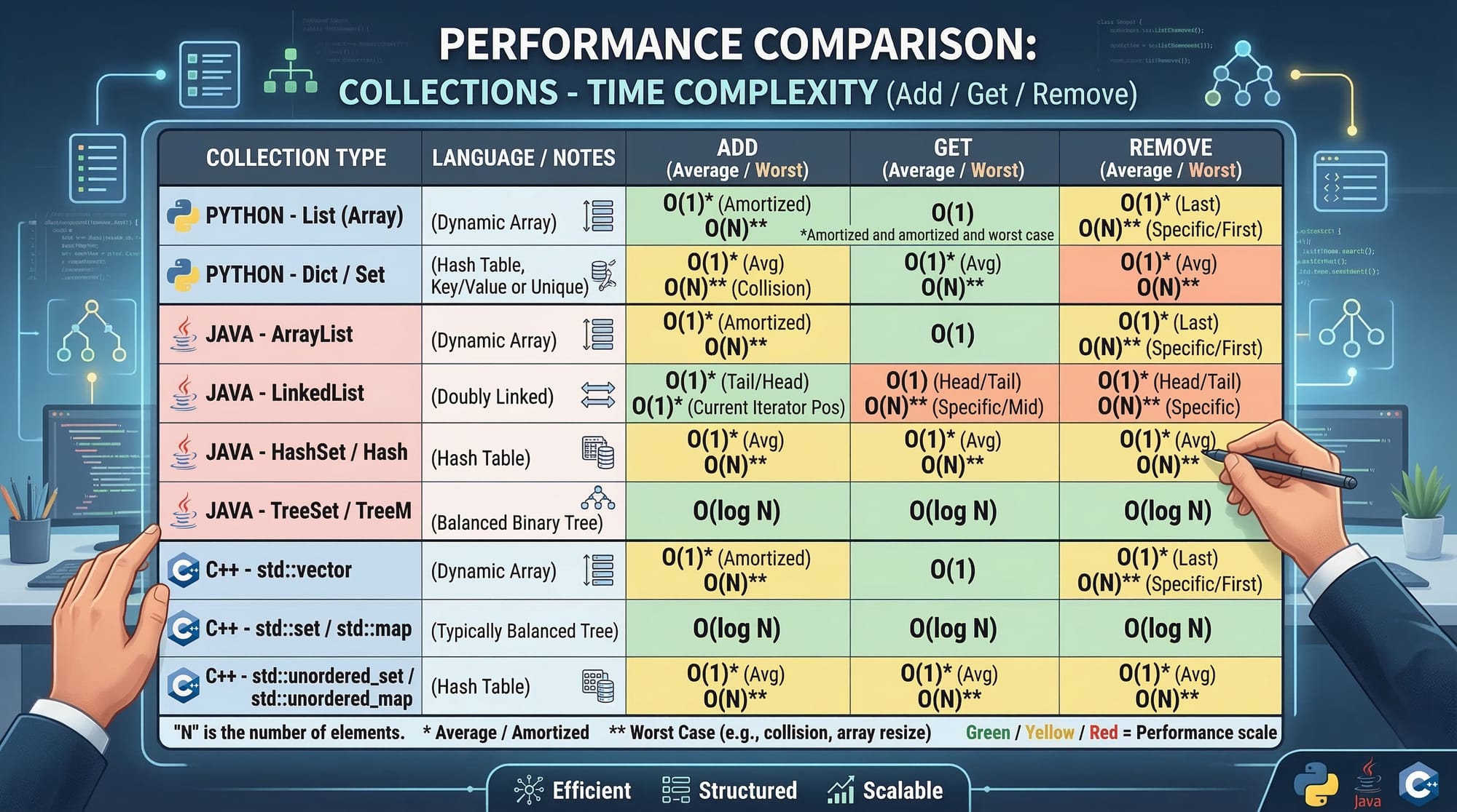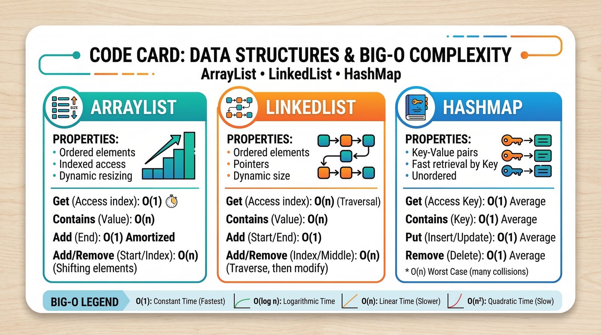 The Java Collections Framework is one of the most important parts of modern Java programming. It provides ready-made data structures that help developers efficiently store, manage, and manipulate groups of objects. Among the most commonly used collections are ArrayList, HashMap, and LinkedList.