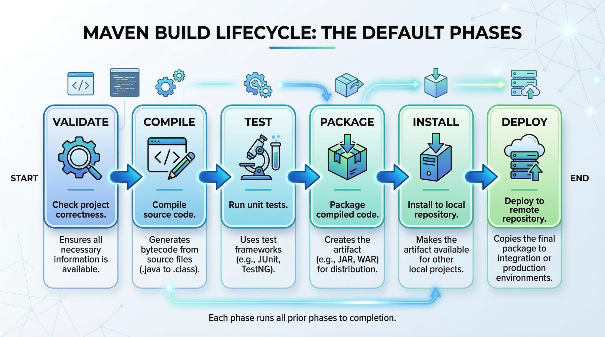mvn archetype:generate– Creates a new Maven project.groupId&artifactId– Define project identity.archetypeArtifactId– Template for quick-start project.