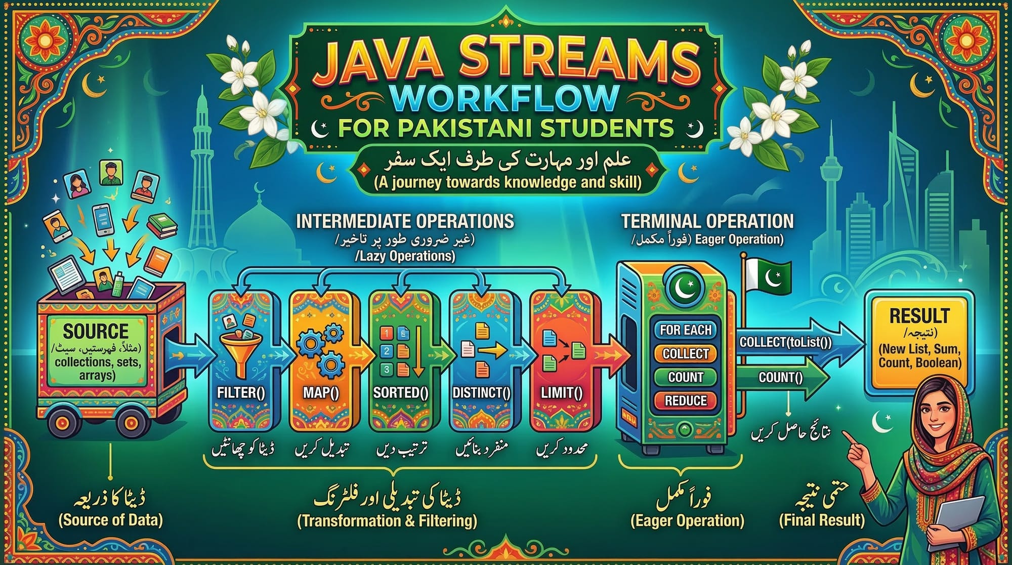 For Pakistani students learning Java, mastering streams and functional programming is essential. Many modern Java applications, including banking systems in Lahore, e-commerce platforms in Karachi, and fintech startups in Islamabad, leverage streams to efficiently handle large data sets and perform operations like filtering, mapping, and sorting.
