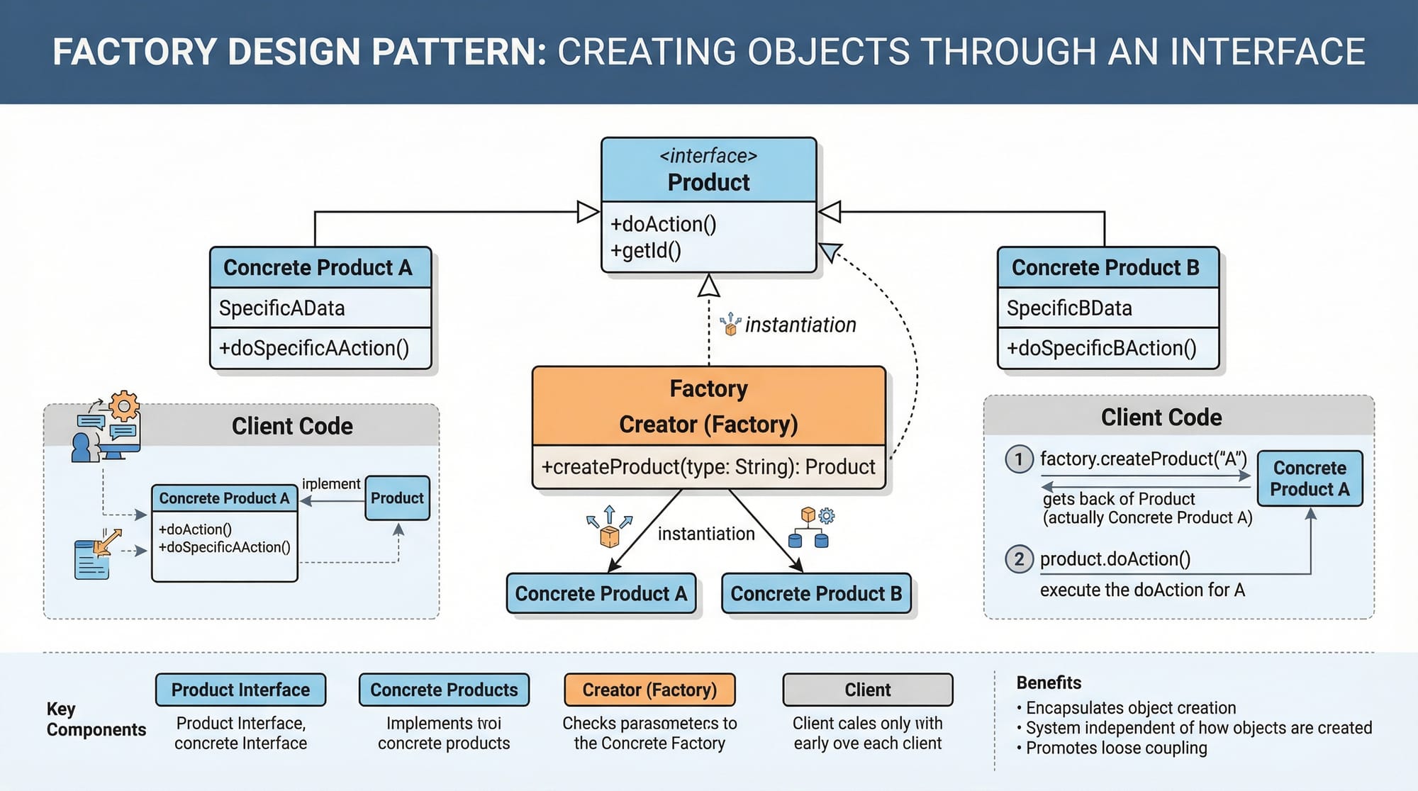 Think of design patterns as reusable blueprints. Instead of reinventing the wheel every time, you apply a structured solution. This is especially useful when working in teams or building large applications.