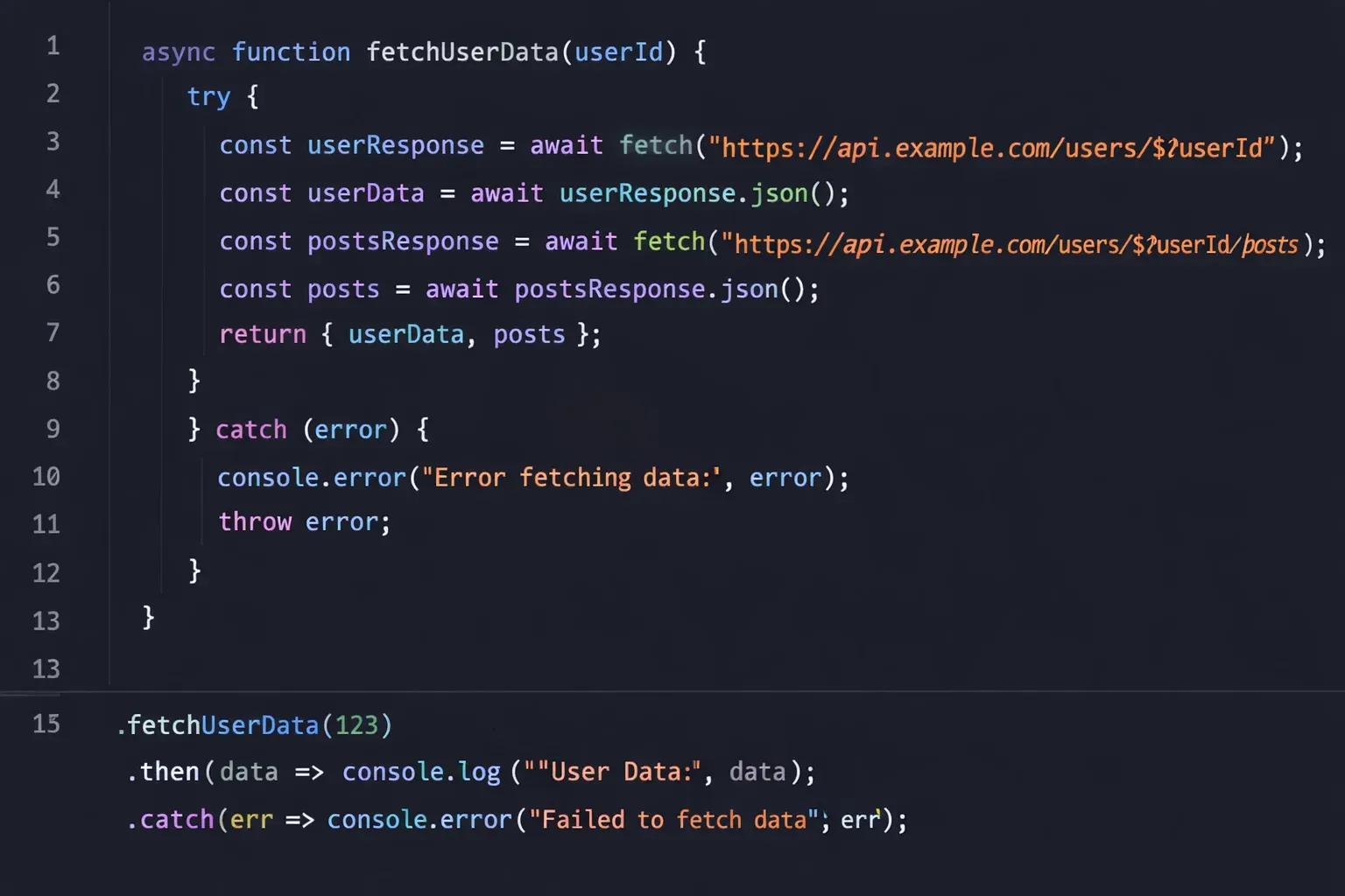 .then()to handle success,.catch()for errors, and.finally()for cleanup code that always runs. - Async/Await makes asynchronous code look synchronous and is built on top of Promises. Every
