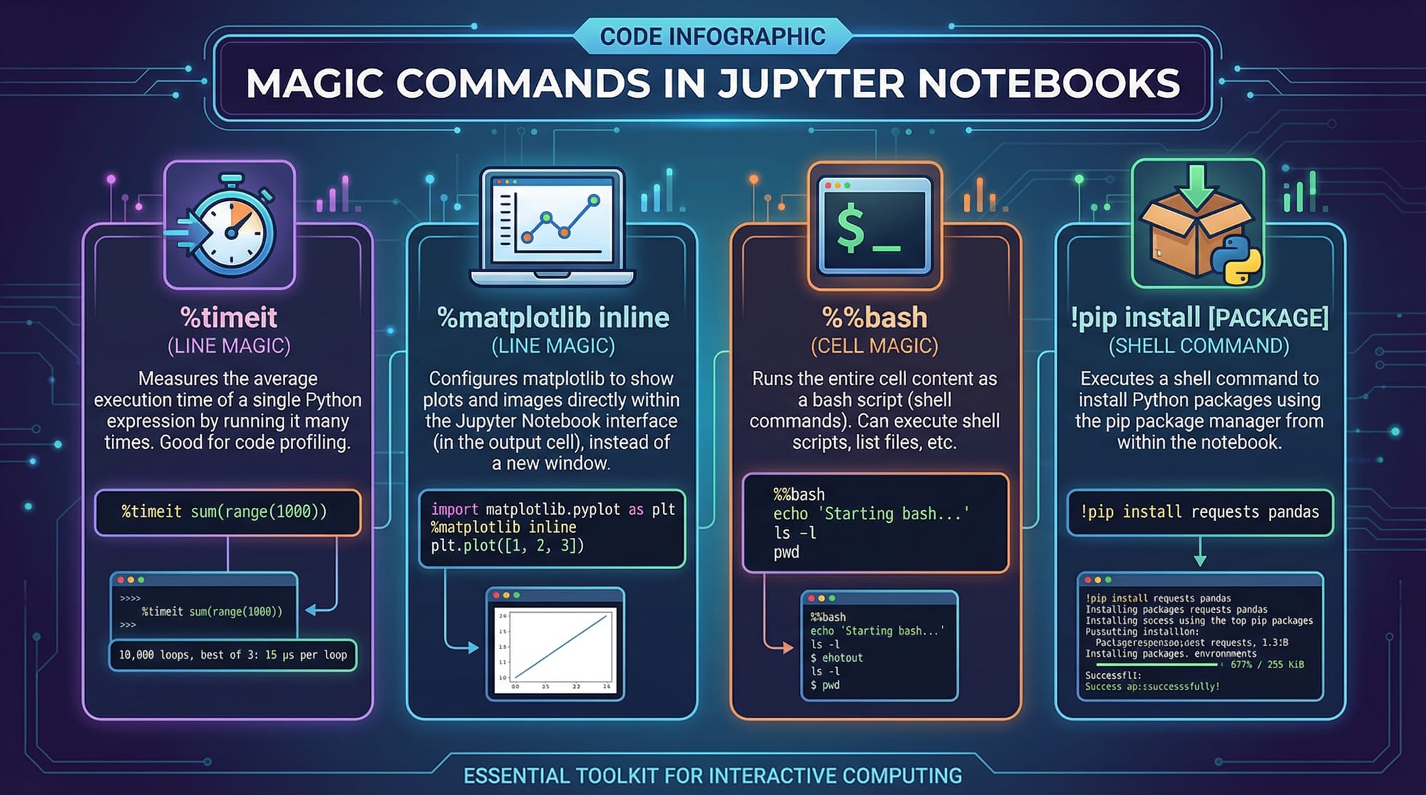 %timeit→ measures execution timesum(range(1000))→ calculates sum from 0 to 999