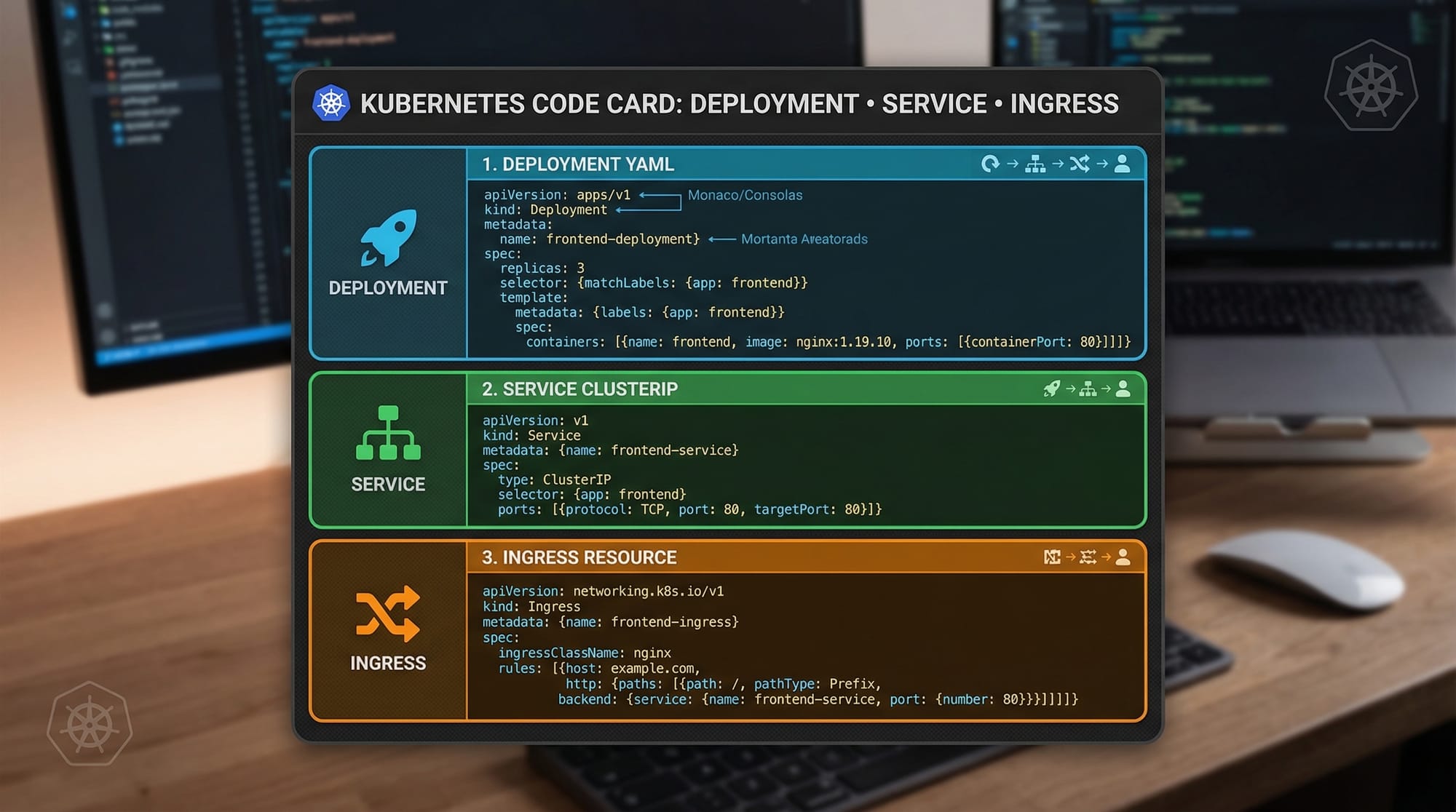 replicas: 2→ Runs 2 copiesmatchLabels→ Links Deployment with Podstemplate→ Defines Pod structureimage: nginx→ Uses Nginx imagecontainerPort: 80→ App runs on port 80