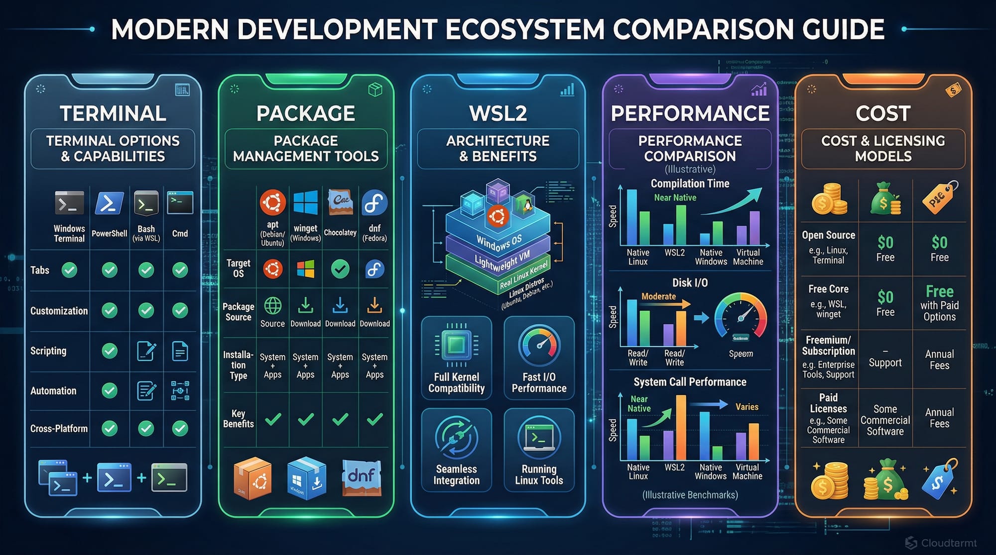 - Windows: Proprietary, user-friendly GUI, supports a wide range of commercial software, includes Windows Subsystem for Linux (WSL2) for Linux tools.
