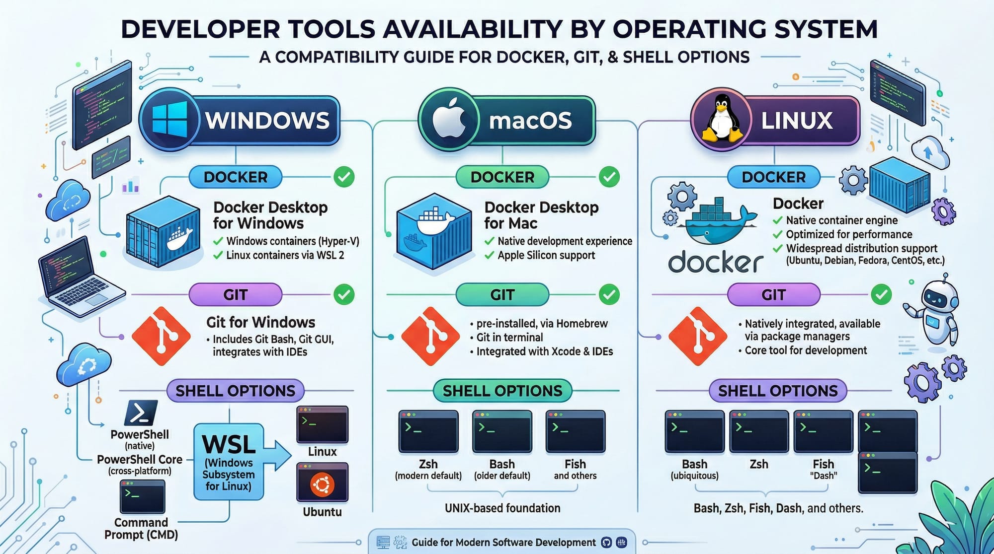 Example: Ahmad, a student in Lahore, wants to learn Python and Docker. Linux provides native support for Docker and terminal-based development, while Windows requires WSL2 for a similar experience.