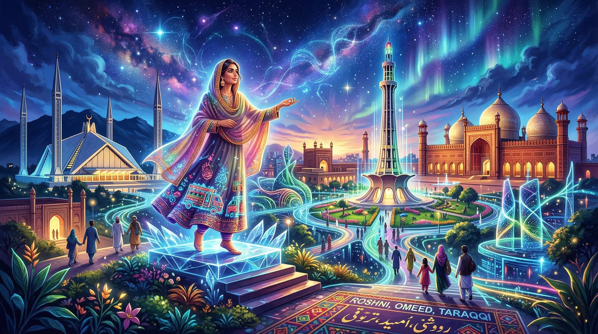 - Include local references like Lahore Fort, Shah Faisal Mosque, or Karachi streets.