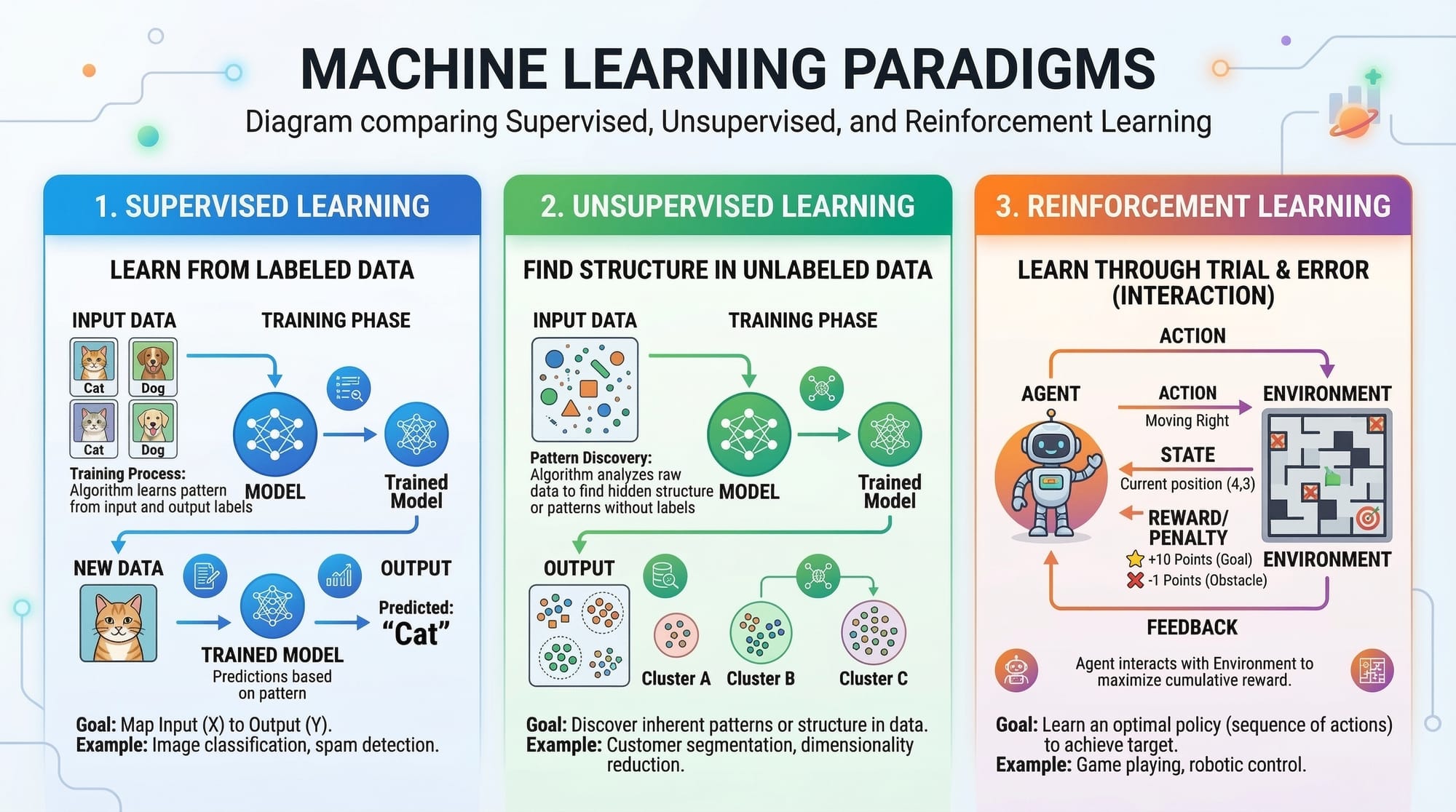 - Reinforcement Learning – Learns through rewards. Example: An app teaching students which topics to practice next by rewarding correct answers.