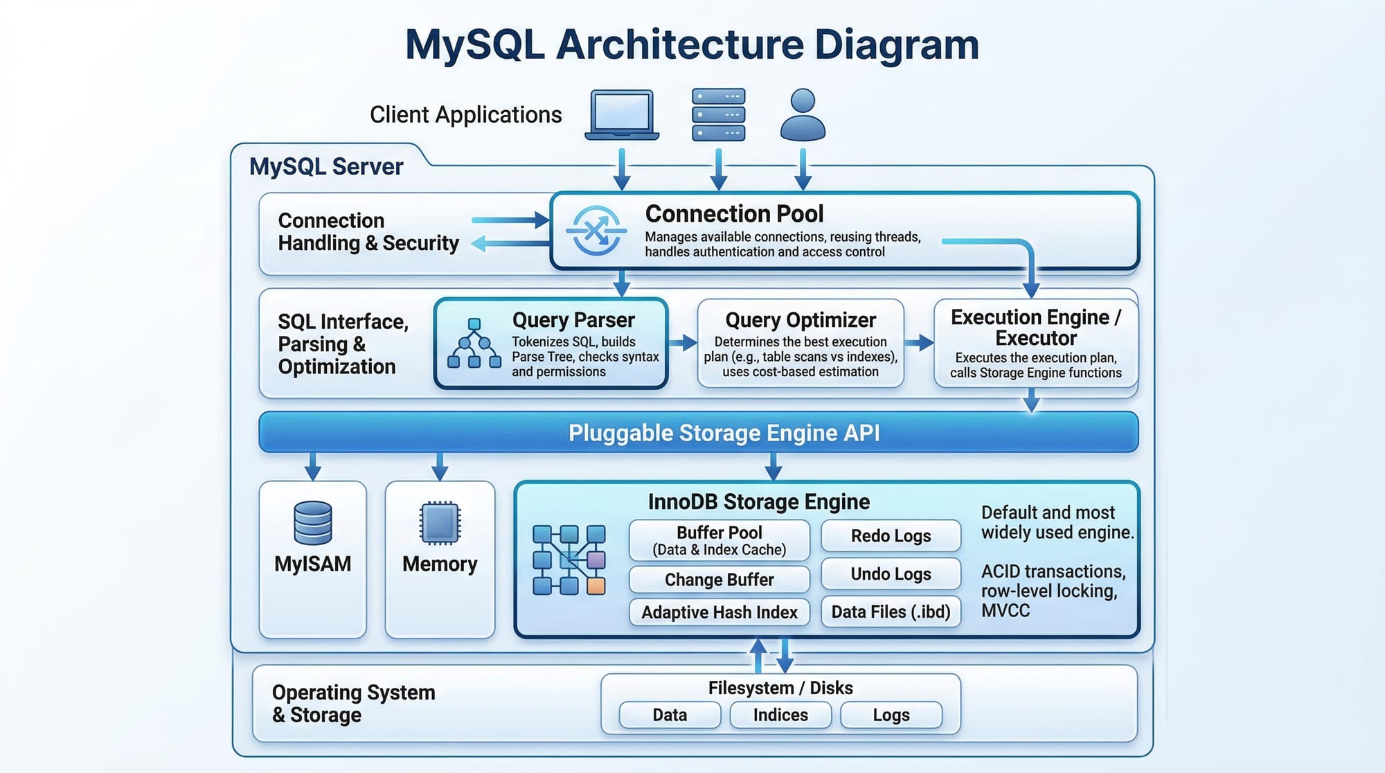 - MySQL integrates well with languages like PHP, Python, and JavaScript