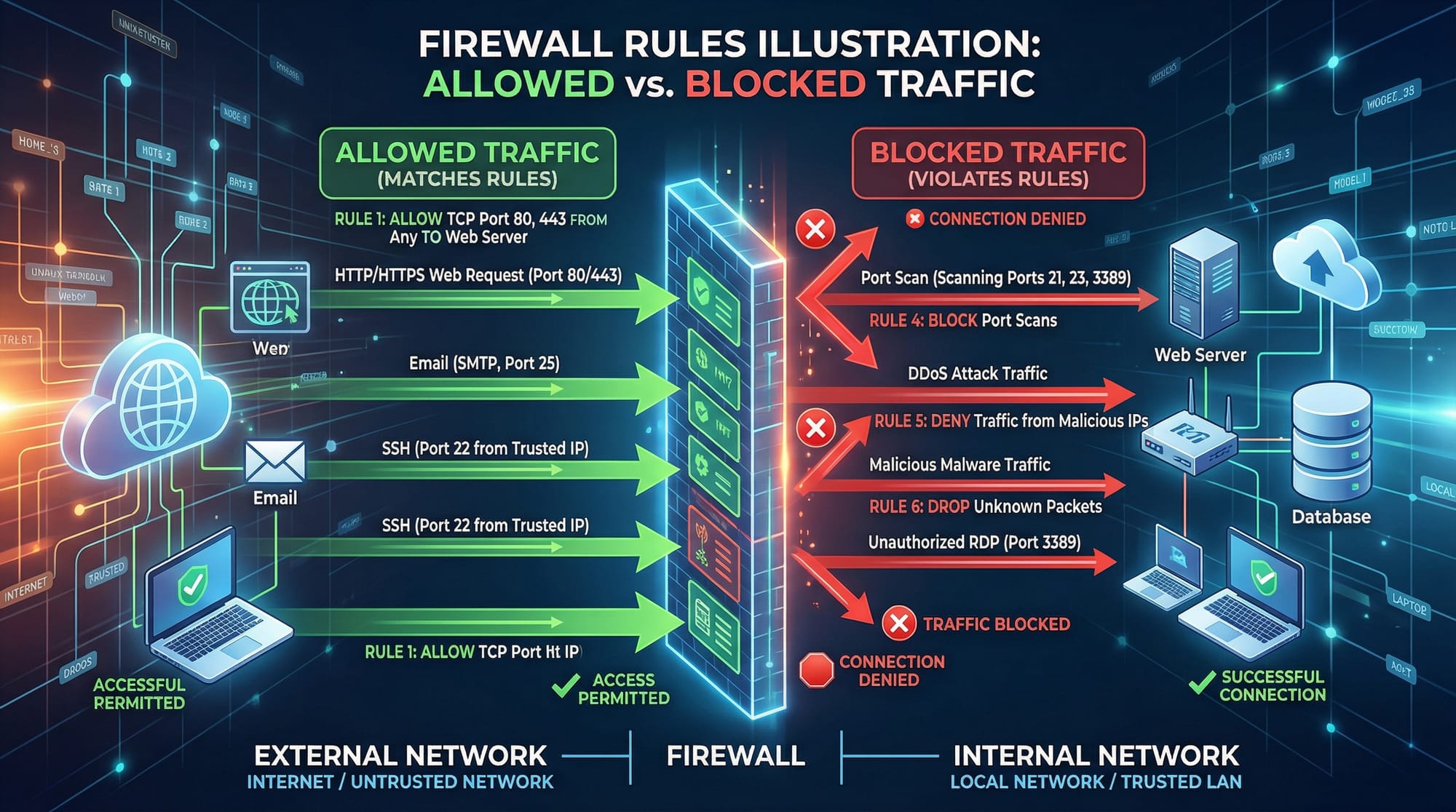 Example: In Lahore, a university network may use a firewall to block torrent sites, but allow educational resources like theiqra.edu.pk.