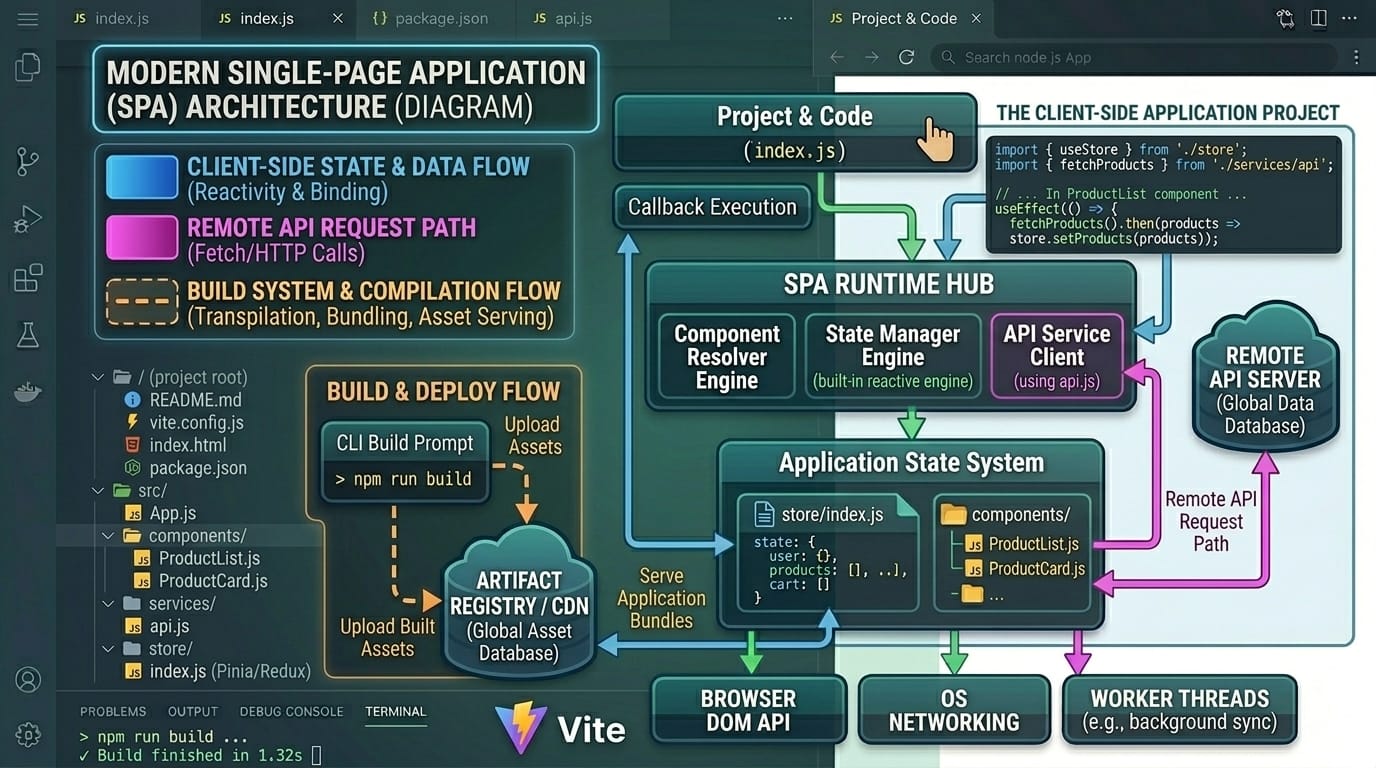 • Node.js Runtime: Node.js is a JavaScript runtime built on Chrome's V8 engine that enables server-side JavaScript execution with an event-driven, non-blocking I/O model.