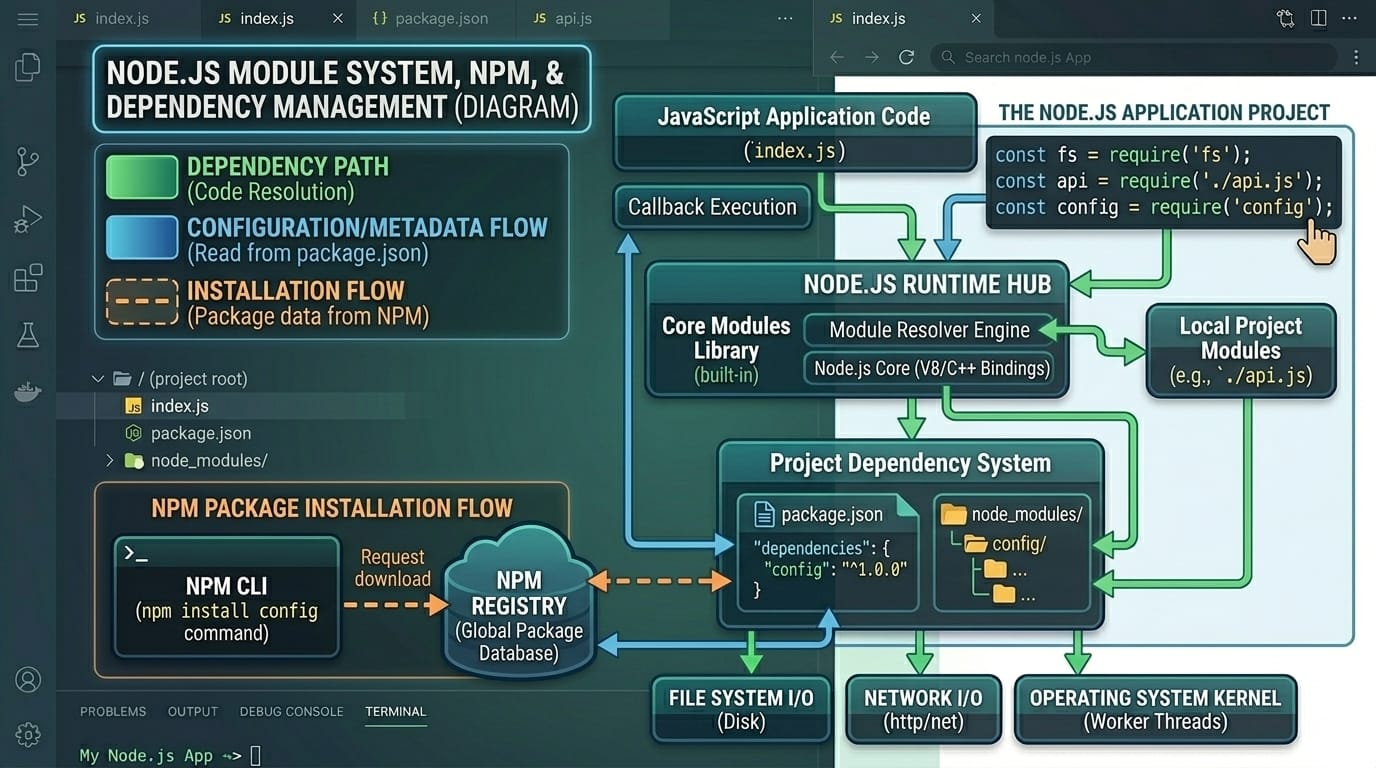 NPM, which stands for Node Package Manager, is the world's largest software registry and an indispensable tool for Node.js developers. It comes bundled with Node.js installation and serves three primary functions: a package registry where developers can discover and download packages, a command-line interface for installing and managing packages, and an online repository for documentation and package discovery. Understanding NPM is crucial for Pakistani developers who want to leverage the vast ecosystem of open-source JavaScript packages.
