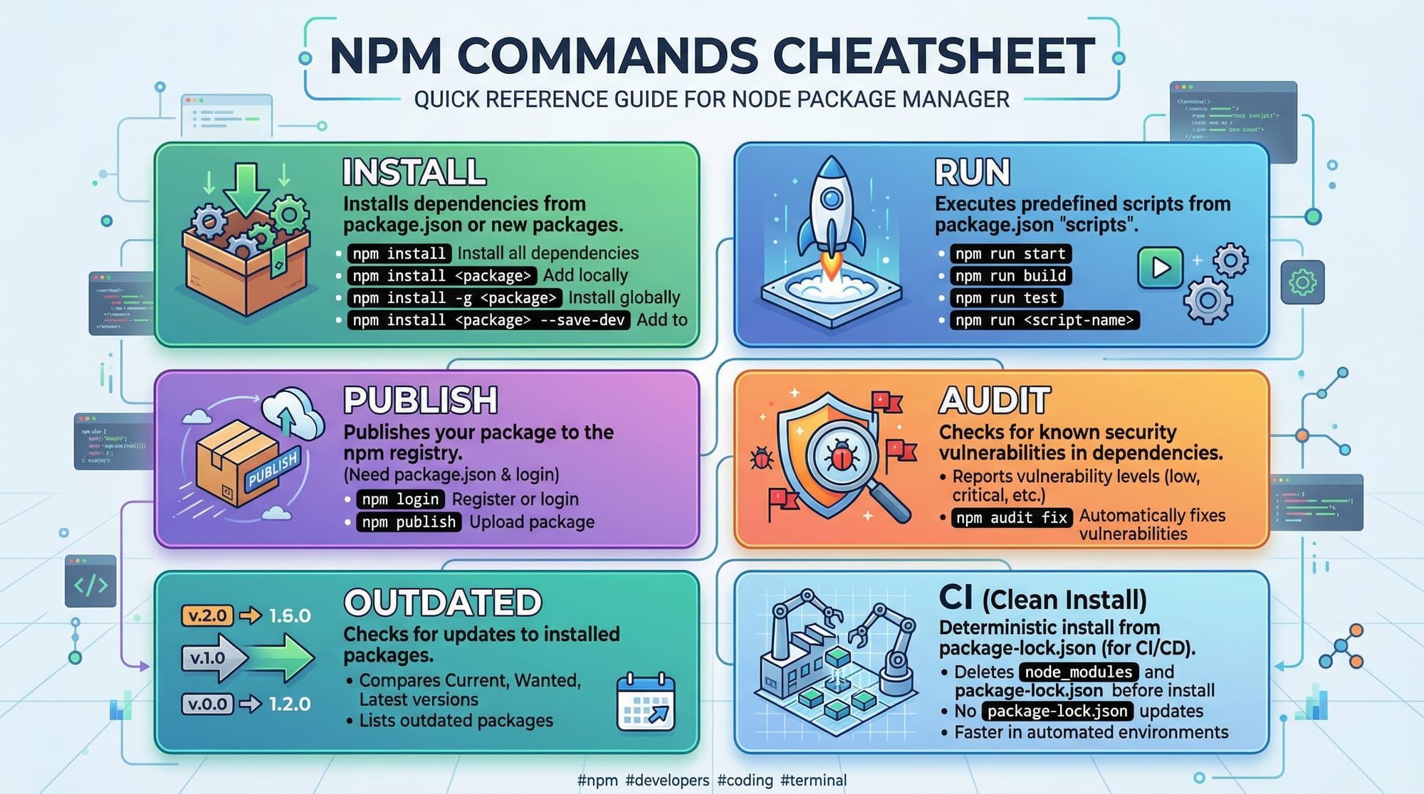 npm, or Node Package Manager, is the backbone of modern JavaScript development. In 2026, mastering npm is essential for every aspiring web developer in Pakistan. Whether you're building websites in Lahore, Karachi, or Islamabad, understanding how to manage packages efficiently can save you hours of debugging and development headaches.