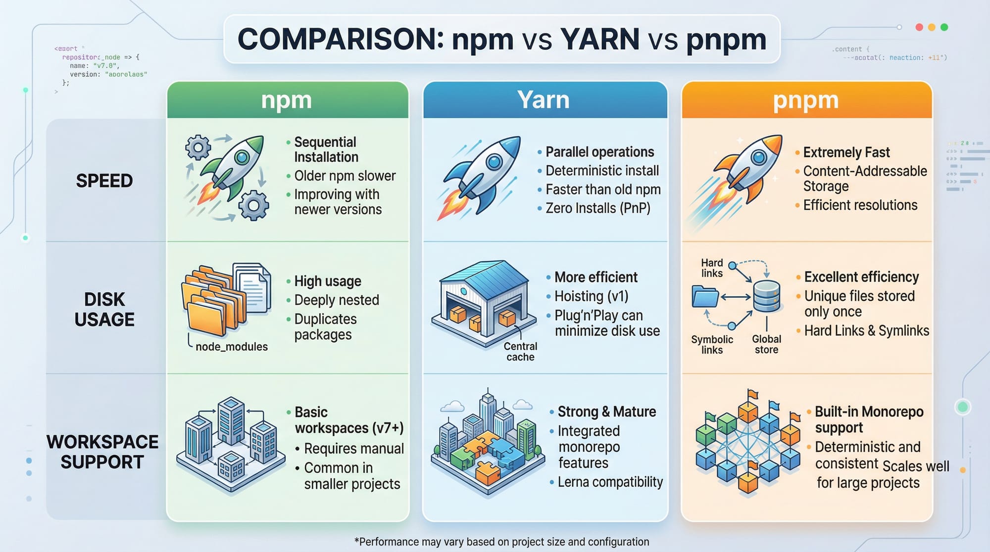While npm is default with Node.js, Yarn is an alternative package manager. Key differences for Pakistani developers: