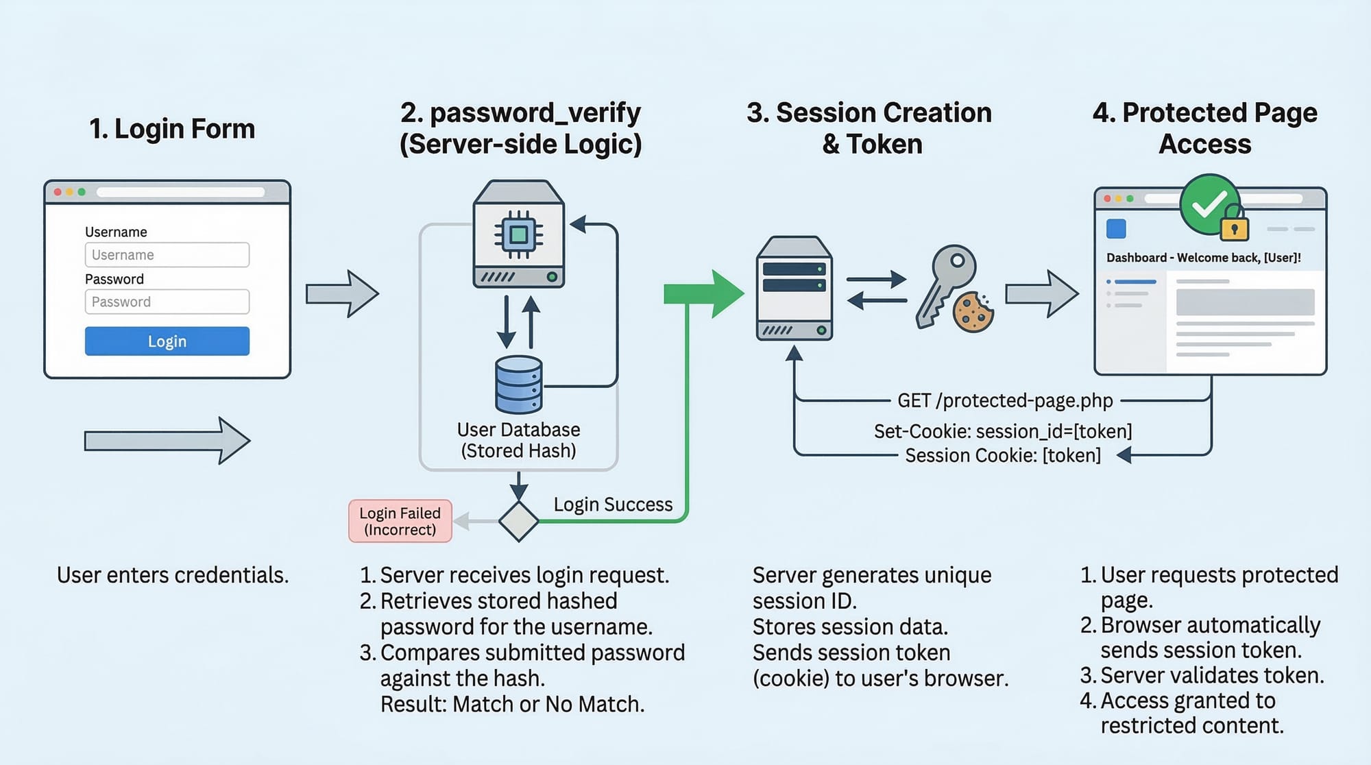 Learning these concepts allows you to build secure login systems for real-world applications.