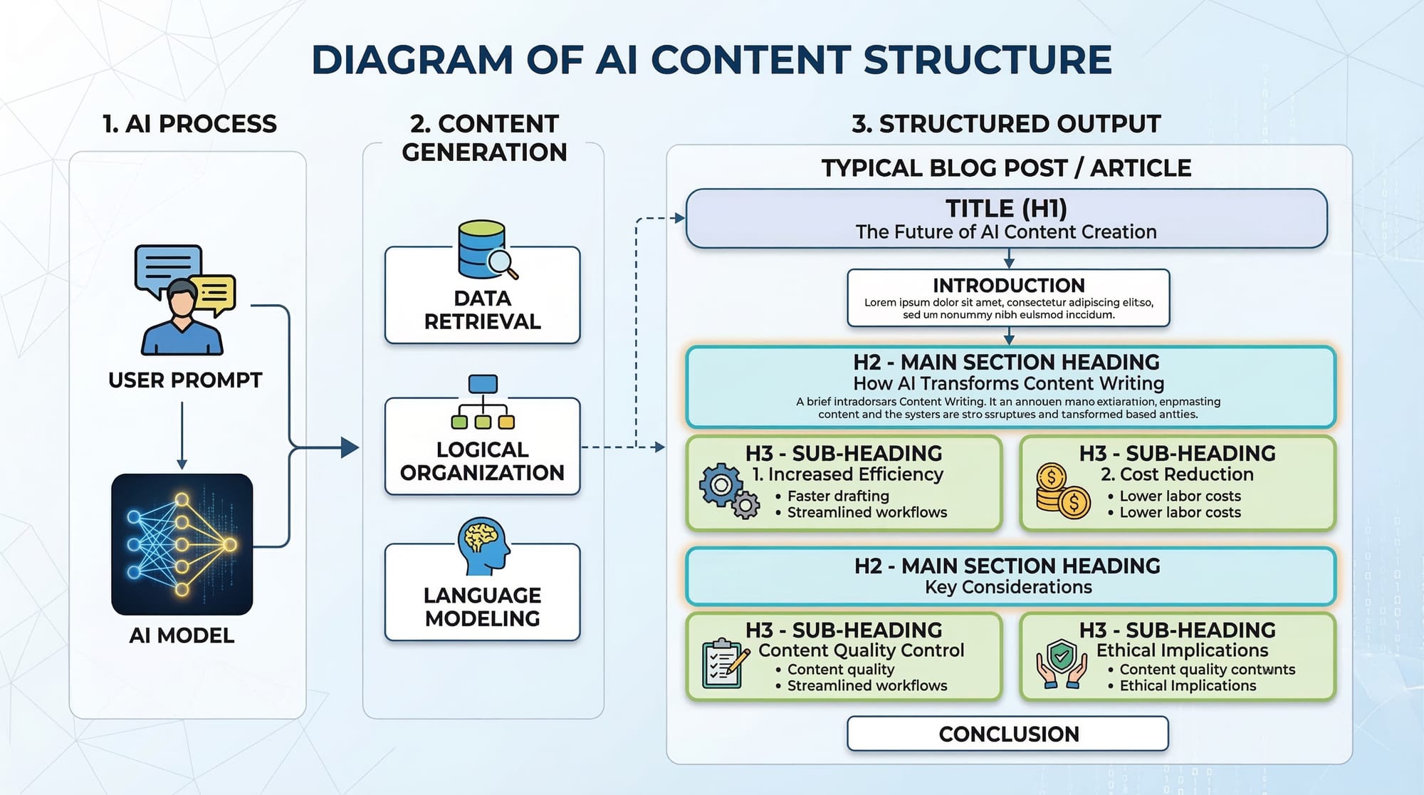 AI copywriting uses prompts to create persuasive text, advertisements, or social media content. Effective AI copywriting requires: