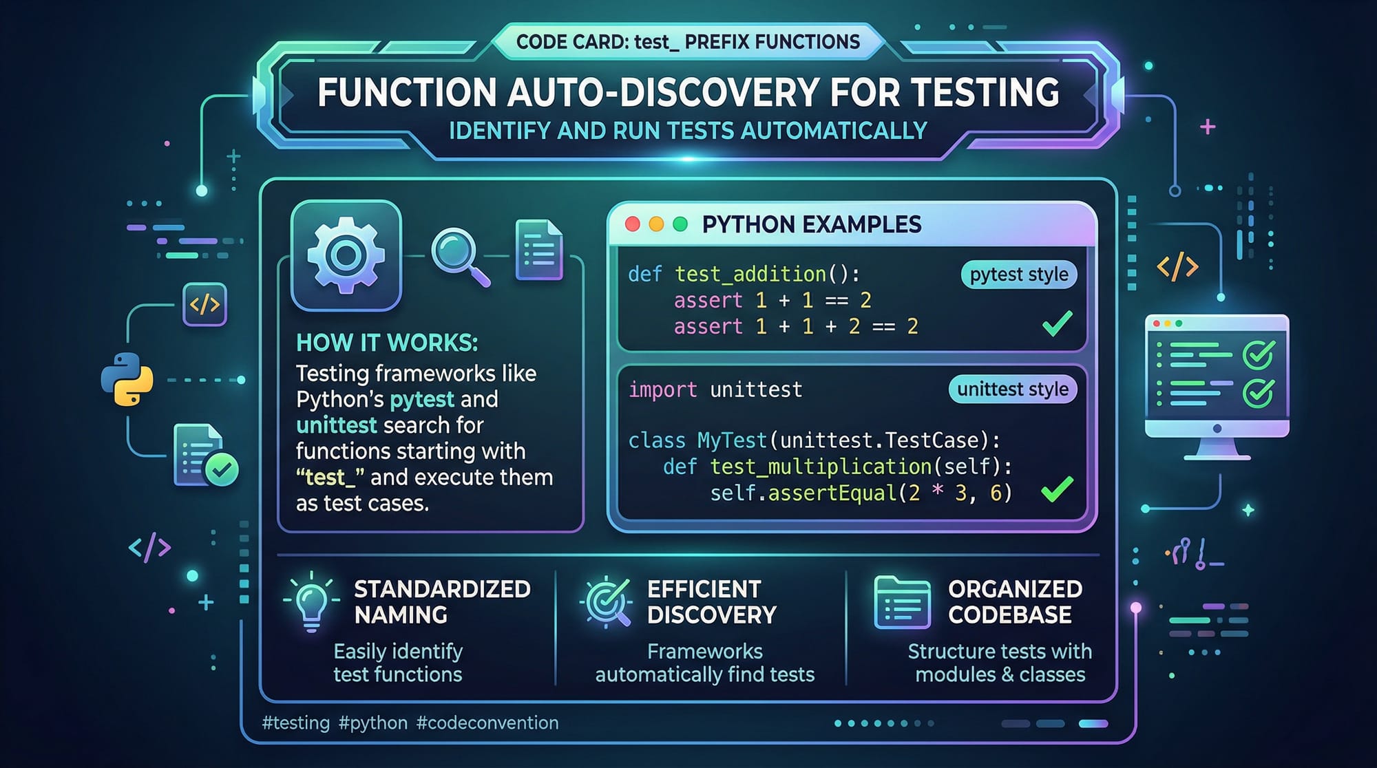 Pytest automatically discovers tests by following naming conventions. Functions or files must start with test_.