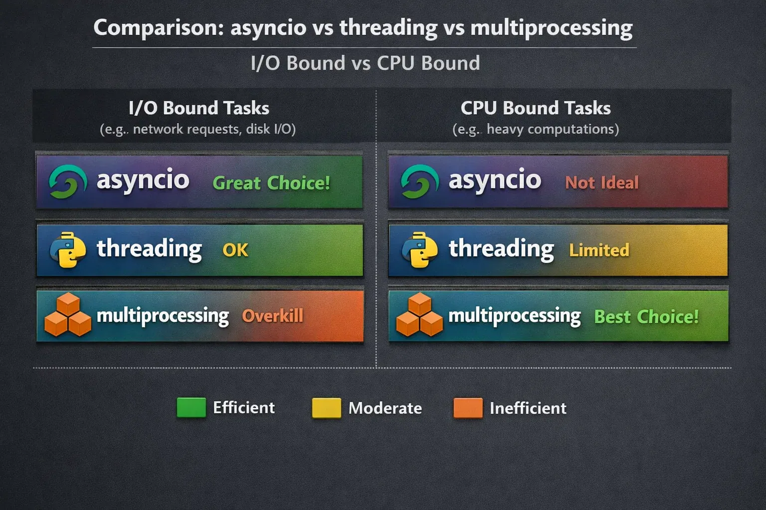 - Understand Python Multithreading vs Asyncio for advanced concurrency strategies.